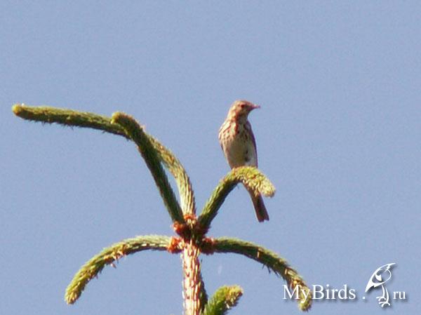 AlexanderFV59 Опубликовано 30 мая, 2008 #12 Опубликовано 30 мая, 2008 Вчера шел дождь я бродил по лесу, хотел найти мухоловку и пятнистого конька, если верить книгам это лучший по пению конек, я встретил такого, пел в лесу высокие сосны, песня разнообразная, отличается от лесного, лугового и краснозобово в лучшую сторону, его удалось отловить, красивая птичка.[