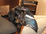 Лизанька Опубликовано 24 июня, 2008 #162 Опубликовано 24 июня, 2008 Вот такой вот наш Кеша.Хвост полностью выпал, и теперь новенький растет.Сегодня сам пытался желток вареного яйца клевать.Еще проблема,что у него клюв кривой.На фото немного видно.А так очень красивый и умный птиц.Любит всякие тряпочки и блестяшки поклевать или поотковыривать.Сколько примерно живут сороки в домашних условиях?