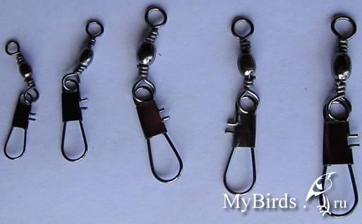 Pticelov Опубликовано 30 ноября, 2012 #28 Опубликовано 30 ноября, 2012 уж вроде много раз писалось, что карабины это вред и птицы отстегиваются от любых карабинов и улетают причем еще и с должиком, что приравнивается к трупам. Odyssey вроде это в который раз подтвердил. Не надо на улице сажать на присады на карабины птиц как мелких так и крупных. в квартире можно, если хочется иногда убирать помет в неких местах и наводить порядок. Карабины можно и нужно использовть на перчатке ибо удобно и птиц уж никак не отстегнется. Амуниция птицы на присаде это опутенки, хороший вертлюг и должик с узлом на конце. Должик привязывается к присаде сокольничьим узлом со страховочным узлом и птица никуда не денется. Все. и нинадо ничего придумывать если птица дорога...ЗЫ: если птица у вас еще "ни разу" не отстегивалась на карабине, то это до поры до времени... Я тоже против карабинов при содержании на присаде. Рано или поздно подводят любые, и как мне кажется, только горький опыт способен разубедить в этом. Пожалуй, более или менее надёжным карабином можно считать такой (первое фото). Другие варианты (особенно те, которые ставят на собачьи поводки) совершенно не приемлимы. Можно использовать для мелких хищников и рыболовные карабины. Вот к примеру система из вертлюгов и карабинов, полностью исключающая возможность запутывания птицы (втрое фото). Карабины крепкие, но при использовании в атмосферных условиях ржавеют очень быстро и требуют регулярного обновления. В комнатных условиях может служить годами.А вообще, в вопросе применения вертлюгов и карабинов, я постепенно пришёл к тому, что лучше обходиться без тех и без других. Самая старая и самая простая система из опутенок и должника с узлом и дополнительным кожаным кольцом на конце, оказалась в тоже время и самой надёжной (третье фото). Прочный шнур просто продевается через округлые отверстия на концах опутенок (или специально нашитые кольца) и привязывается к кольцу на присаде (узел на ваш вкус). Свободно вращаясь в отверстиях должник выполняет роль вертлюга. При этом, выгодно отличаясь от обычного вертлюга, при использовании классических опутенок, а не люверсов, такая система исключает не только перекручивание опутенок между собой, но и не дает перекручиваться верхней опутенке (той, в отверстие которой был продет должник сначала). Перекручиваться может только нижняя опутенка.Но нужно учесть один момент. Должник должен вдеваться довольно плотно и в тоже время свободно проворачиваться. Это важно на присаде-стуле с небольшим диаметром. Если нижняя опутенка соскользнёт по должноку. то очень вероятно "одевание" на стул. Если используется дуговая присада, то проблем быть не может.