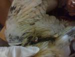 Комент вета-орнитолога: "на сколько я понимаю, там плечевая кость сломана, при открытом переломе без спицы осколки совместить не получится они по любому разойдутся, мышцы сильно тянут. крыло должно быть зафиксировано в естесственном положении. а не вытянуто, иначе есть опастность, что оно после не будет складываться."