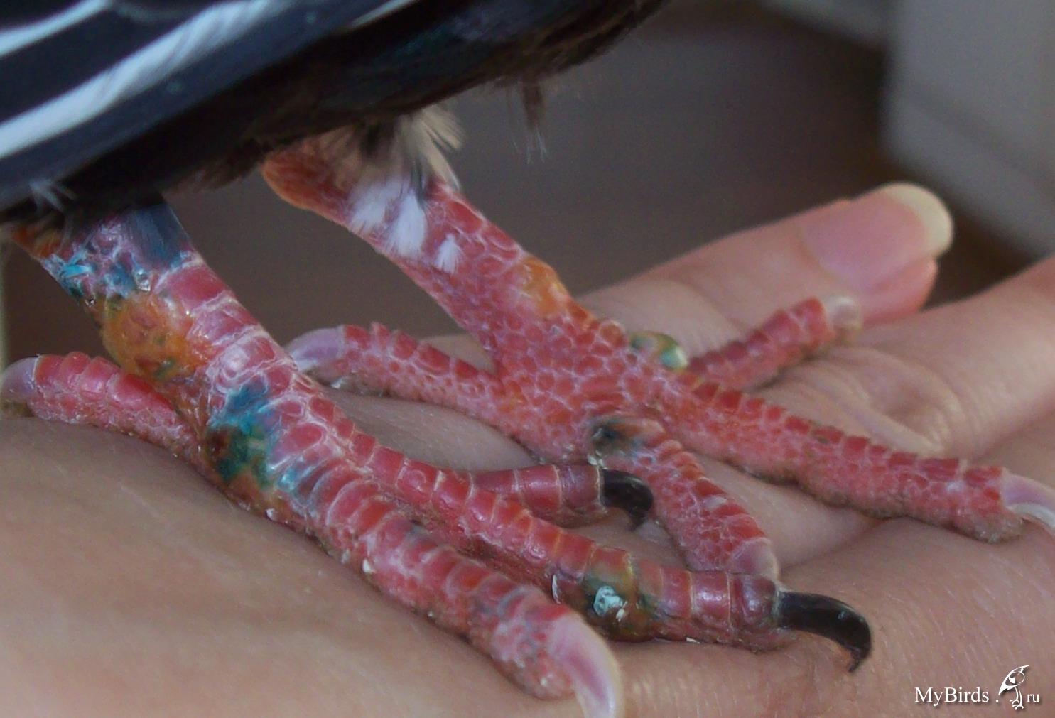 Tatita Опубликовано 20 августа, 2010 Автор #10 Опубликовано 20 августа, 2010 (изменено) Вот фотографии. Вот фотографии. На левой лапке треснул, когда стала смазывать Бетадином.Гуля нервничает весь день почти ничего не ел, до этого клевал очень даже быстро. Нина полу. ни на газете, смотрел в окно на навещавших. Но в клетке днем сидел тихо. Сейчас, перед заходом солнца бился. И изменился помет с утра. когда словила было меньше жидкости.. сейчас на фото Tatita, на последнем фото- некроз тканей. Сзади омертвевший пальчик. Вы и его зеленкой мажете? Нельзя ведь! Нужно бесспиртовые растворы Cheshirski, вполне...Tatita, у Вас какая погда в последние пару недель? Юстас, уже нормальная. Летняя. как и надо в августе. Днем около20-25. Вечером чут ниже. Это вчера погода резко изменилась.На прошлой неделе было жарко 32-36. Дожди шли редко.Голуби питались до 10-11 часов и сидели в тенечке до 16. Все под моими окнами. Так, что Гулю видно было целый день. Он в стайке малышей носился. Взрослые голуби летали в парк рядом, там источник. и последняя фотка(где некроз) не моей птицы. Изменено 20 августа, 2010 пользователем Tatita