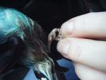 ivolga20 Опубликовано 16 ноября, 2010 Автор #81 Опубликовано 16 ноября, 2010 Cheshirski спасибо за ответ. А что делать с зеленой найденышем? чем ее покормить усиленно. Я вижу она чаще дремлет, голову в крыло, когда выпускаю погулять, голубая, шустрая пытается вспорхнуть, а зеленая сидит где посадили? редко поиграется...Еще увидела сегодня у голубой на голове среди перышек красная кожа( фото выкладываю)Что это?????????? и она сегодня сломала коготок из него опять долго текла кровь, даже гемостатич губка не помогала, прижгла марганц кристаллом. Но это ужас как выматывает, по полчаса не могу остановить кровь....!!!!!!!!!!!!!!!!Может я в тряпке ее держала когда коготок прижигала(кусается сильно) и голову зажала, что кожа покраснела, или мои на прогулке ее затюкали, намазала это место пантенолом. Намины тоже мажу пантенолом 1-2 раза в день.
