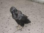 Гильдис, враны тоже попрошайничать не дураки. Кора любит "делать птенчика" - разевает клюв, потряхивает крылышками и умильно тоненько вякает. Это она так просит, чтобы еду прямо в клюв положили. Из миски ей не так интересно. :)