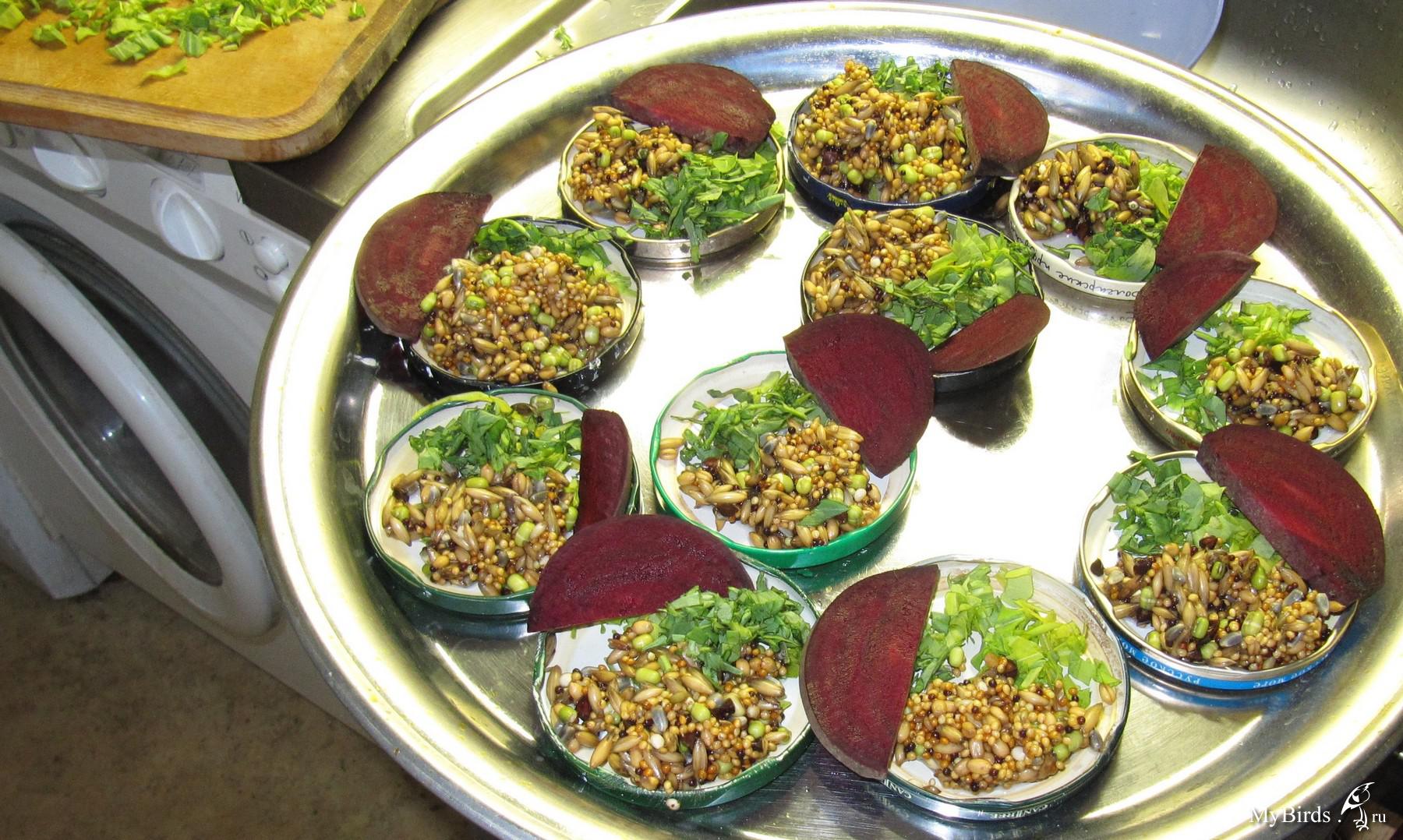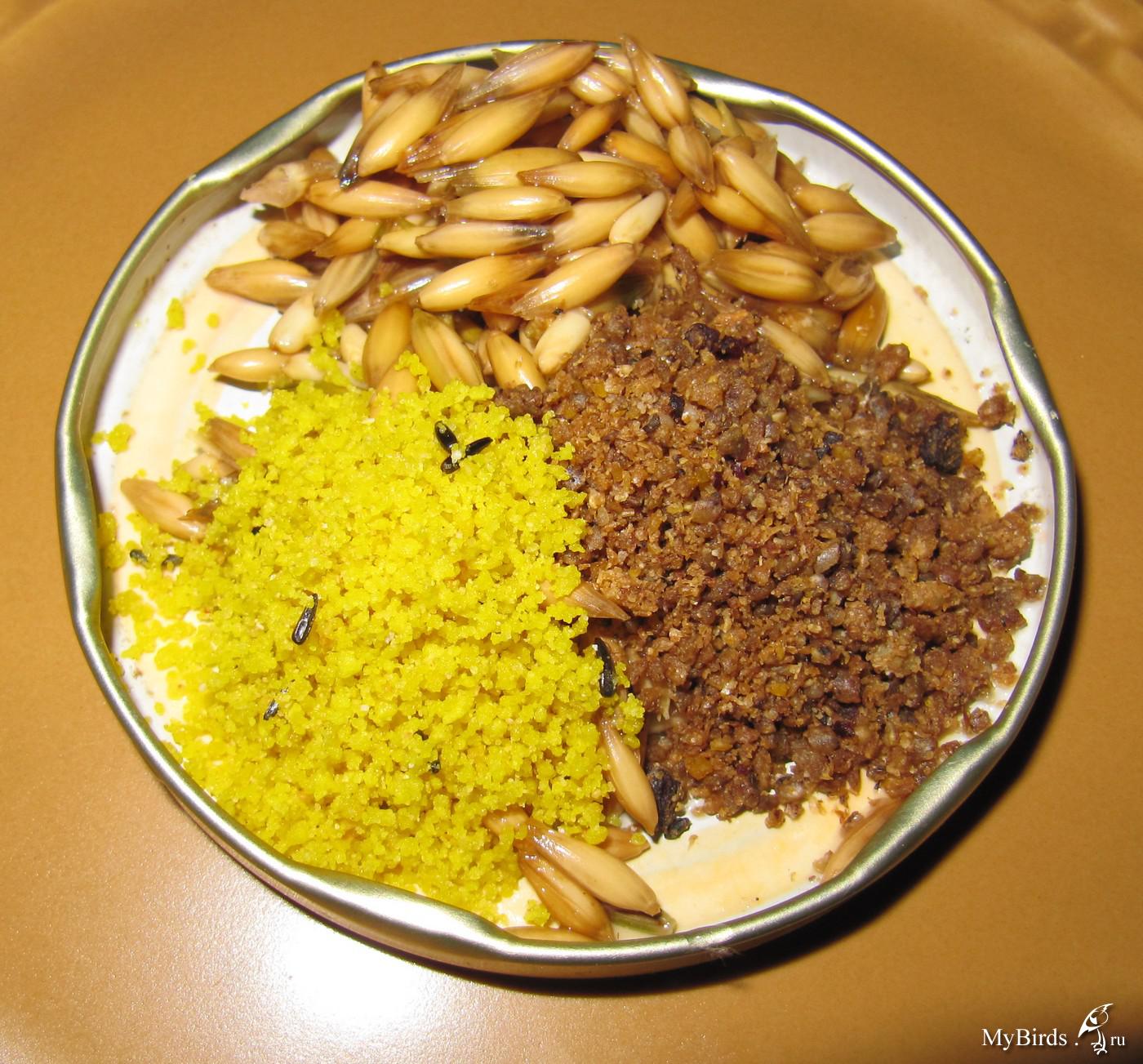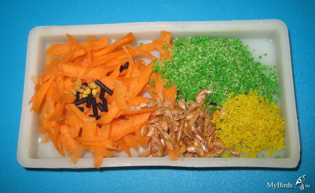 ПОльга Опубликовано 2 марта, 2010 #44 Опубликовано 2 марта, 2010 (изменено) поделюсь и я, а то давно собираюсь... к основному зерновому корму добавляю по нескольку раз в день приблизительные разовые порции (на разное количество птиц)здесь фото - просто как примеры или наглядное пособие пророщенный овёс, морковь, яблоко, ростки сафлора свекла, пророщенное зерно, зелень пшеница пророщенная, морковь тёртая, сок мандарина сладкого пшеница пророщенная, рис запаренный, фасоль, яблоко, мандарин пророщенный зерн.корм РИО, перепелиное яйцо в скорлупе, огурец, гаммарус гаммарус и тертые морковь, яблоко, яйцо пророщенные пшеница+просо+маш+нут+живая греча болгарский перец+ мандарин+ростки сафлора пророщенные пшеница+маш+нут+живая греча пророщенный зерн.корм РИО, виноград пророщенная живая греча пророщенный маш болгарский перец+яйцо перепелиное яблоко Padovan – Ovomix gold Grallo (желт.цв.), Melange vegetable (зелен.цв.), морковь, гаммарус, гранулы угля, цветочная пыльца то же, без цветочной пыльцы кенийская фасоль пророщенная пшеница, морковь, творог нежирный греча, настоенная на медовой воде салат,в данном случае - фриссе морковь, сок мандарина с мякотью тёртый стебель сельдерея овёс , Padovan – GranPatee (для лесных птиц), Ovomix gold Grallo (желт.цв.) канареечник, Padovan –Melange vegetable (зелен.цв.), суш. морская капуста, яблоко, перепелиное яйцо цветочная пыльца (изредка, на кончике ложечки) ростки сафлора (изредка, в небольших количествах) традесканция (в зимнее время, когда нет др.зелени) веточки с распустившимися почками веточки с распустившимися листочками букеты колосков полевых (летом) заоконная плантация льна молодые листья одуванчика (с сер.апреля по конец мая) или выращивать из семян круглый год ростки маша и пророщ.пшеница "подножный корм"(с сер.мая и почти всё лето)и это ещё не всё, позже буду добавлять посезонно приятного аппетита! Изменено 28 мая, 2010 пользователем ПОльга