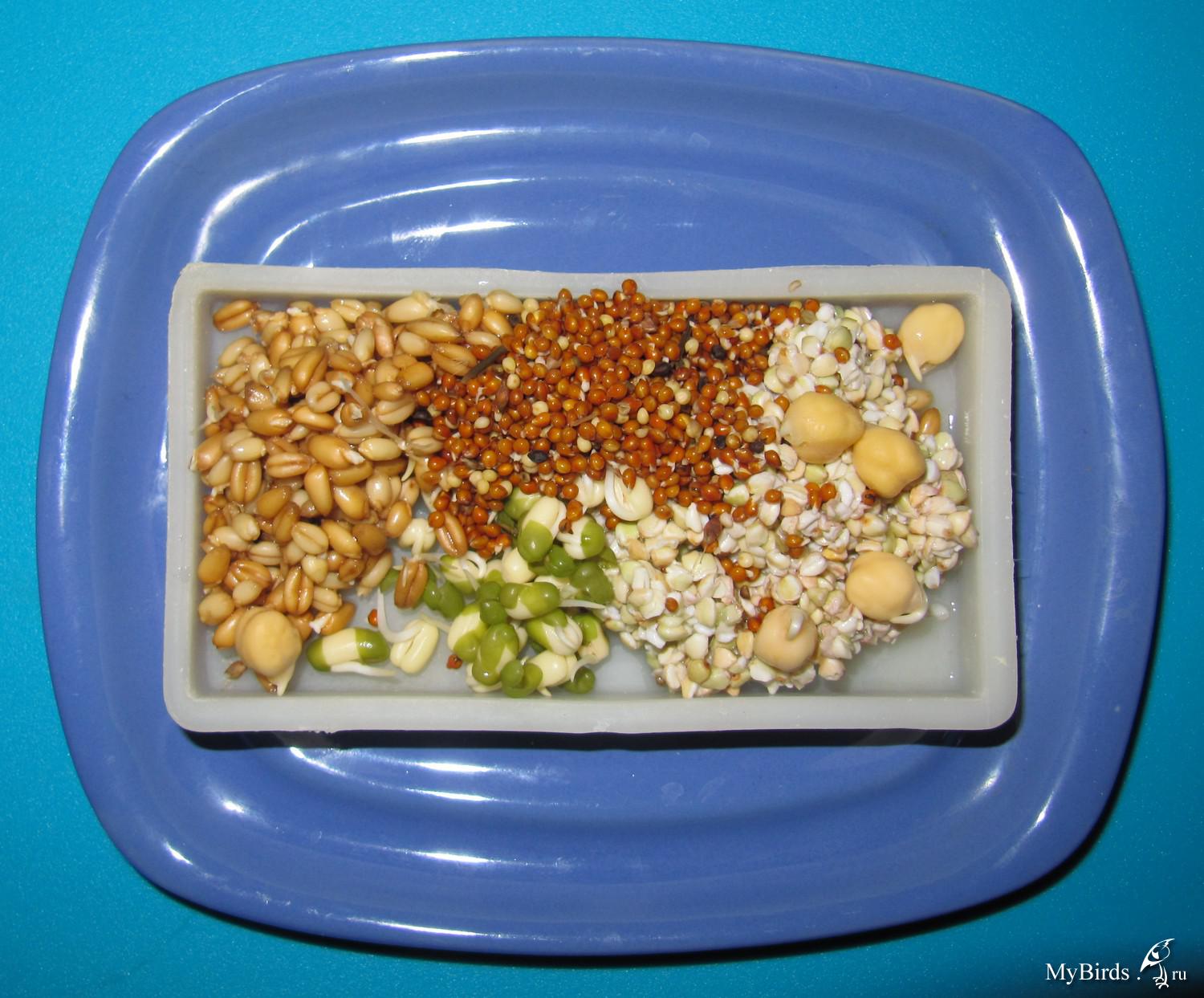 Sheila Опубликовано 14 марта, 2009 #19 Опубликовано 14 марта, 2009 У меня свой способ проращивания пшеницы: В 800 мл банку насыпаю на 2/3 зерна пшеницы, заливаю тёмным раствором марганцовки, встряхиваю банку, и оставляю на 15-30 минут. Затем, раствор сливаю, наливаю в банку с зерном кипячёной воды комнатной температуры до верха, оставляю на 12 часов. После этого, сливаю всю воду, а банку с пшеницей помещаю в холодильник. Такое зерно быстро прорастает и не плесневеет. Мне такого объёма хватает на неделю. Начинаю скармливать на второй день. Очень хорошо стимулирует размножение и повышает иммунитет. Птенцам в морковно-яичную мешанку добавляю сушёные муравьиные куколки или гаммарус. Пробовала давать мучников, но попугаи на них не реагируют.Помимо мокрицы и одуванчиков, мои птахи обожают полевые злаки в стадии молочной спелости: лисохвост, мятлик, ежа сборная, костер и т.д. Собираю букеты подальше от дороги на лугу, обгрызают так, что одни стебли остаются. Я развожу волнистиков и корелл. Гаммарус очень каллориен, поэтому сильно увлекаться им не стоит. Можно купить измельчённый, и на порцию морковно-яичной мешанки сверху насыпать примерно половину чайной ложки, без верха, затем всё перемешать. Гаммарус только как добавка, например, как соль или сахар для человека. Крупный гаммарус предварительно измельчаю. Сушёные муравьиные куколки вначале заливаю кипятком, и даю немного набухнуть.