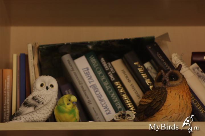 НаталиК Опубликовано 8 января, 2015 Автор #181 Опубликовано 8 января, 2015 На новогодние праздники к нам явился гость: . Старшая дочь завела себе дружочка. Купила в магазине, не посоветовалась... Я бы у форумчан купила, а ей этого жалко стало. Рук шугается, но контактный. Степашка зовет его "маленькая птичка": "Маленькая птичка, покушал?" Гуляет в соседней комнате с совами, почему-то их не боится. Окрас интересный, "какой-то недозрелый", как сказал мой муж.