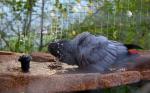 Ну, вот такой Полли у нас: не боится совершенно, прилетает, чтобы быть рядом; очень ревниво следит, чтобы его ни в чем не обделили. При этом внимания к себе не любит. Если угостить не в настроение - возьмет и швырнет, лапку попросить не во-время - даст, но рыкнет. Ласковые речи в свой адрес слушать любит, но если опять-таки "не в духах" на каждое слово будет рычать. При этом чиститься может, когда стою совсем рядом, не боится совсем. Очень любит играть на присаде, когда Степаша уже ужинает в клетке, а ему разрешается задержаться. И очень любит младшую дочь: когда та приезжает время прогулок проводит у нее в комнате на шкафах, чего-то там курлычит и играет тем, что там для него приготовлено.