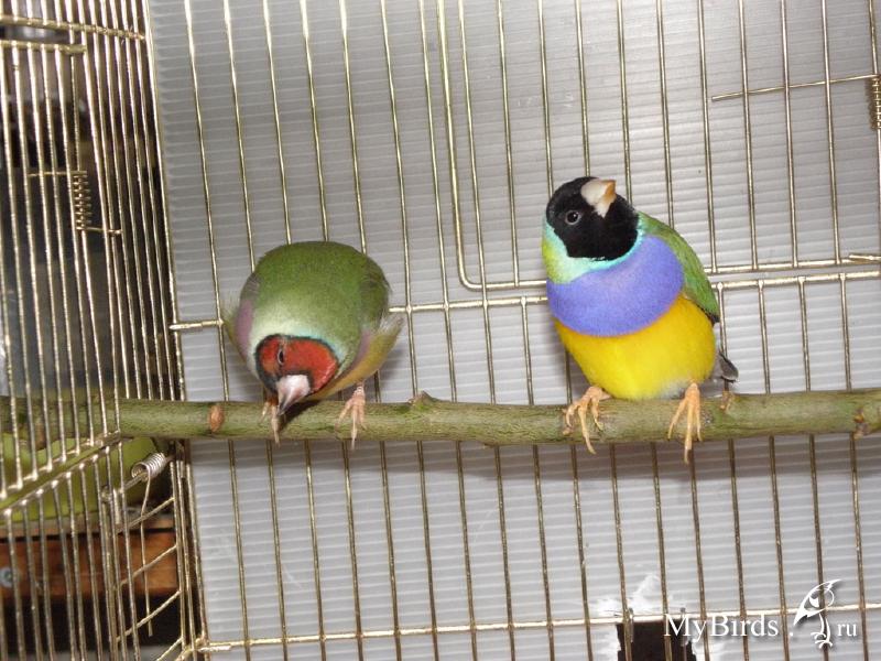 Fizalis Опубликовано 27 октября, 2010 #1 Опубликовано 27 октября, 2010 А вот и я к вам Вот уже второй день, как я являюсь визжащей от счастья хозяйкой гульдиков. Брала молодых (выводок этой весны или лета) перелинявших во взрослое оперение птичек. Взяла сразу пару - самец черноголовый, самка красноголовая, оба природного окраса. Собственно, сразу начинают появляться вопросы, часть из которых я утрясла с их прошлой хозяйкой - владелицей частного зоопарка.. но часть-то осталась.. и вот я иду к вам. Итак, начнем сначала:Гульдиков привезла домой вечером после работы. Из переноски пришлось бесцеремонно вытаскивать, ибо сами ни в какую вылезать не хотели. Самка сразу же начала летать по клетке и садится на стены с перепуганным видом. Самец нашел жердочку, но тоже периодически обеспокоенно летал. Кормушку, кстати, святое дело, нашли сразу еще во время паники. Пришлось выключить свет, оставив приглушенные от бра на стене. Это благотворно повлияло на птичек - сели на жердочку и стали засыпать. Утром я встаю в 6.30-6.40, на улице темно, но мне-то надо собираться, так что, я включаю свет и начинаю сыпать птицам корм.. вобщем, самец проснулся через минут 10, развернул голову из-под крыла и начал наблюдать за мной. Самка же стала чуток просыпаться только к моему уходу через час. Вечером пришла домой опять же уже затемно и включила свет. Самец снова минут за 10 очухался и стал летать, "разговаривать", кушать, траву тягать.. а вот самка так и осталась в полудреме. Сегодня утром опять то же самое - самец просыпается сразу, даже поет (если нечто похожее на сигнализацию шепотом это пение), а вот самка с сонным видом только чуток по сторонам смотрит. Меня это начинает беспокоить. В руки далась сегодня с утра на раз, зато уже в руке вдруг приобрела очухавшийся вид и стала клеваться. Обе птицы упитанные, каки на поддоне просто супер, перо глянцевое. У самки чуток идет линька - в маске есть трубочки. Что с самкой? Холодно? В квартире 20-21С, но самец явно не замерз. Или может, я просто слишком резко меняю ей режим дня и ночи, отчего она слегка "в ауте"? Не хочу упустить что-то тревожное, но и теребить птицу, у которой банальная адаптация, тоже неохота. Маму попросила пронаблюдать за птичками днем. Сейчас начала витамины винка, прошлая хозяйка витаминила их с месяц назад. Думаю просто сделать укороченный курс (дней 7). Стоит дольше или меньше? Кстати, птицы далеко не настолько шуганые, как мои канарейки. У самца можно чуть ли не перед носом руками махать, он только шею вытягивает и разглядывает, что я делаю. Фотика не боятся совсем, только самка недовольно меееедленно отходит.