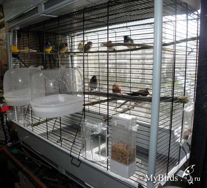 Fizalis Опубликовано 19 июля, 2013 Автор #244 Опубликовано 19 июля, 2013 Пришла еще одна пиано-6. Ее пришлось чуток уменьшить, потому что пластик на крыше был сломан. Теперь там обитает моя "отбраковка по амадинам", т.е. все те птицы, которые по тем или иным причинам не будут участвовать в размножении: кольчатые астрильды с лысыми шеями (это случилось еще до меня и за полгода так и не заросло), японцы (этих я просто не хочу размножать), 4летний самец гульда, который в 2 попытки гнездования дал пустые яйца, синий гульд, который с 3 самками тоже давал только пустые яйца, самка гульда с поврежденным глазом, самка гульда, которую пыталась убить мать и птенец этого года с неправильным прикусом (подклювье заходит за надклювье, причем, птенец явно его выпячивает). Надеюсь, им там будет комфортно