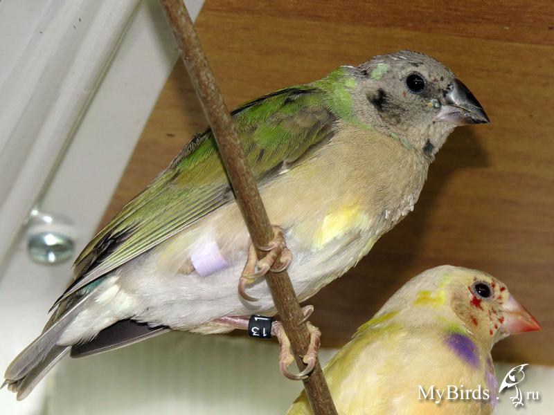 Fizalis Опубликовано 28 ноября, 2013 Автор #266 Опубликовано 28 ноября, 2013 В реале грудь совершенно кремовая, но в фб в гульдовой группе советуют подождать полного окрашивания. Думают, что она все еще может оказаться фиолетовой. У Лотты исправился прикус Это моя маяйская девочка, единственная выжившая из выводка Атина и Энигмы (Атин, как я уже писала, вылетел в окно из закрытой клетки, сдвинув купалку, пока я была не дома, а самка одна не справилась с малышами). У Лотты подклювье стало выступать и перерастать, я подняла кучу фотографий с гнезда (а я делала снимки чуть ли не ежедневно) и обнаружила, что проблема появилась уже после вылета. Теперь прикус выправился, надклювье стало длиннее подклювья. Так что, ура Девочка, кстати, совершенно очаровательная. Лотта была старшей в выводке, я запоздала с кольцеванием и не смогла надеть кольцо на нее