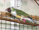 Fizalis Опубликовано 5 ноября, 2013 Автор #253 Опубликовано 5 ноября, 2013 Что-то у меня к зиме гульды активизировались в плане разведения. Одну пару (Цезарь и Айрис) пришлось рассадить, потому что они бы и 4ю кладку сделали бы, причем в кормушку. Еще одной (Русь и Белка) пошла навстречу, отсадила и дала домик, они в этом году еще не пытались вообще (самка не приняла предложенных самцов, а новый был ей выдан пару месяцев назад). Самец усиленно перед ней скачет, она довольна: вертит хвостом и кивает. Интересно что весной и летом птицы особо не хотели, а посаженые на гнезда сидели черти как. Вообще, на данный момент у нас такой результат: Майя (зеленая белогрудая) и Силк (осветленный зеленый) дали 4 птенца, но 1 (белый) умер. Почему - не знаю, обсуждали выше. У одного малыша были проблемы с глазками, но, вроде, их удалось решить. В данный момент видно, что у этой пары получился оранжевоголовый парень (пока не уверена в цвете груди, вероятно, белая), оранжевоголовая белогрудая девушка (вошла в активную линьку) и синяя белогрудая девушка (это та, у которой глазки) После попыток в прошлом году с синим парнем, а в этом с желтым Цитрусом, Хлоя дала одного птенца - оранжевоголовый осветленный парень. Уже видны первые цветные перья Желтая девушка Саммер с осветленным самцом Крисом дали 2 желтых, 2 зеленых и 1 осветленного зеленого малыша Малышка из весеннего выводка Атина и Энигмы полностью во взрослом оперении (уже довольно давно). Цвет у нее очень необычный - темно-зеленый. К сожалению, на родительской ее карьере я ставлю крест из-за дефекта клюва, нажняя челюсть все так же перерастает за верхнюю. В данный момент на гнезде свою последнюю, 3ю, попытку использует Сима, на этот раз с сыном Атина Тави. Похоже, попытка провальная. Яйца побили, осталось одно, и я не заметила в нем признаков развития. Но хоть не гоняет парня больше, в прошлую попытку Сима не позволяла Тави идти в гнездо. Цезарь и Айрис, которых я упомянула раньше, 2 раза устраивали пляску с яйцами. Самка сидела на гнезде свою половину времени, а Цезарь сменять ее не хотел, бегал около ящика и орал с удивленными глазами. Не барское, видать, дело - на яйцах сидеть. Может, в следующем году у него шарики с роликами пойдут на компромис.