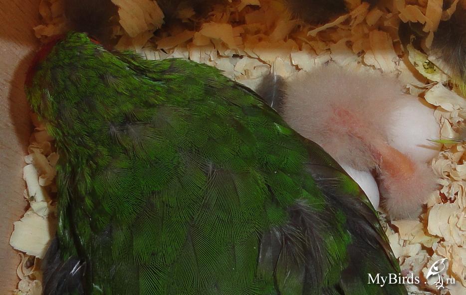 кана Опубликовано 2 марта, 2011 Автор #18 Опубликовано 2 марта, 2011 У парочки зелёных (Муха и Барашек) очень быстро завязались тесные отношения и в понедельник 28 февраля вылупился птенчик, а 2 марта второй птенчик.Сегодня сделала фотки первенцев.
