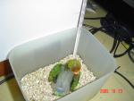 bimiri Опубликовано 24 октября, 2005 #1 Опубликовано 24 октября, 2005 Здравствуйте!Так получилось, что появилась у меня ещё одна птичка - маленький неразлучник Рыжик. Мне его просто так отдали. Отказаться не смогла...Вопросы такие:1. Сколько ему? Есть ли уже 2 месяца или нет? 2. Как "поднимать на ноги"?Кормила его фруктовым детским питаньем, детской безмолочной кашей с фруктами, смесью Кети для птенцов, смесью из большого количества круп и бобовых (без сахара, соли, молока). В еду добавляла по 3 капли Вита-сола и сыпала немного лактобифадола. Ещё давала разбавленный тёплой водой апельсиновый сок.Вчера птенчик был очень активный - 2 раза выбирался из коробки и уползал под кровать, много чистился (насколько он это может в своём возрасте), всё время потягивался и даже несколько раз помахал крылышками - полетал. Кушал просто отлично. А вот сегодня какой-то не такой. С утра поел мало, сейчас спит (во сне иногда тоненько попискивает). Может я что-то сделала не так?Находится он в пластиковой коробочке (поменяли на большую, чем на фотографии). Температура там всегда 30-35 гр. В комнате работает увлажнитель воздуха. На дне коробочки насыпан наполнитель из серединок кукурузных початков без добавления химии. А ещё меня беспокоят его глазки. На фотографиях не очень видно. Они у него какие-то дряблые - кожа складками висит вокруг глазок. Но видит нормально, кажется. У Фишеров же глазки должны выглядеть как у какадушек - в смысле голая часть вокруг глаз. У какадушки ничего не висит, а у Рыжика кожа вокруг глазок какая-то странная. Капала ему по 1 капле в каждый глаз в течение двух дней дезинфицирующие глазные капли. Не знаю. Глазки не выглядят раздражёнными, они просто выглядят несколько странно. Вот, собственно, как обстоят наши дела. Посоветуйте, пожалуйста, кто знает. Что я ещё могу сделать для малыша?
