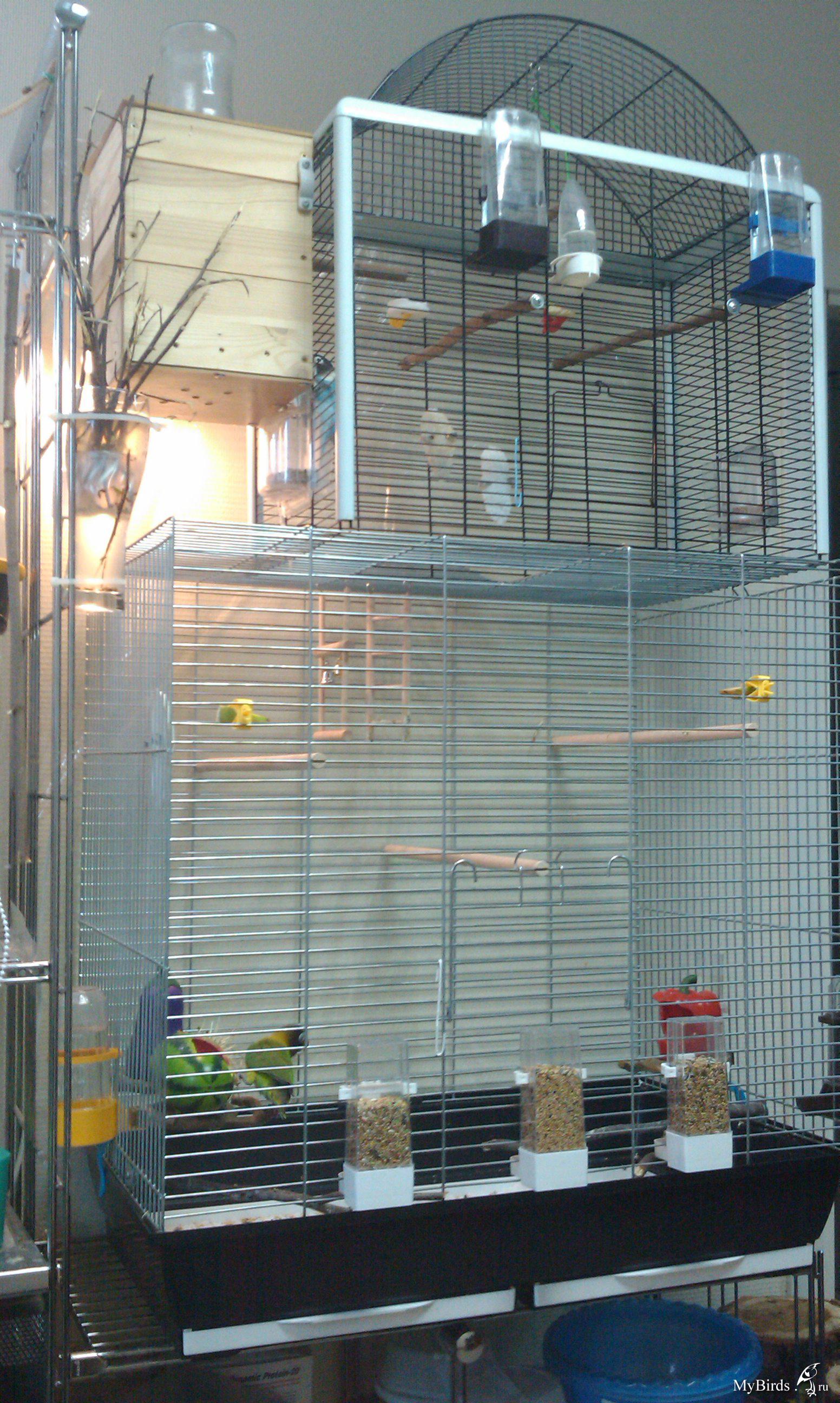 Jing Опубликовано 6 апреля, 2011 Автор #52 Опубликовано 6 апреля, 2011 своим орлам взял новый дом. т.к. птенцы еще не вышли из гнезда, скворечник перевешивать побоялся - вдруг их кормить перестанут. поступил проще - снял дно у старой и поставил ее на крышу новой (благо в ней есть верхний люк). Получилось вот такое:в дальнейшем планирую оставить сверху только купол от старой клетки