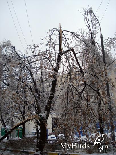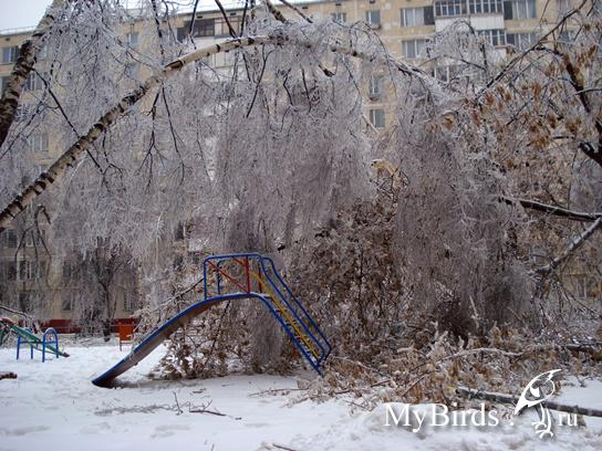 Съездила на дачу, север МО, граница с Тверской. Ледяного дождя там не было вообще, деревья стоят все чистенькие, едва припорошенные снежком, но птиц нет. Одни вОроны и ворОны, и конечно, вездесущие сороки. За три дня пребывания там на кормушку ни одна птичка не прилетела :(