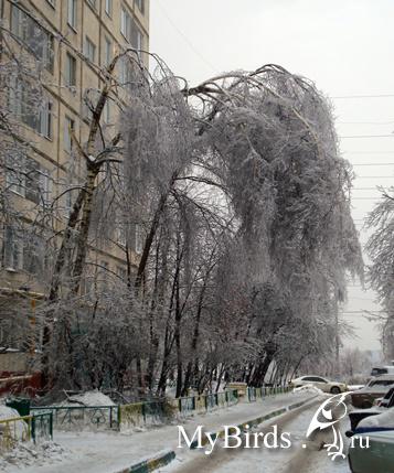Здравствуйте! 25 дек. в Москве прошел ледяной дождь, а 26 дек. мне "посчастливилось" прилететь в домодедово, в этот же день был билет обратно, смогла вылететь только на след. сутки. Все последствия капризов природы ощитила в полной мере. У нас почему то тоже мало птиц стало видно, иногда кормушки днями висят полными, но потом смотришь все таки гости пернатые были, кушали...хотя у нас температура под -40 зимой почти всегда! :)