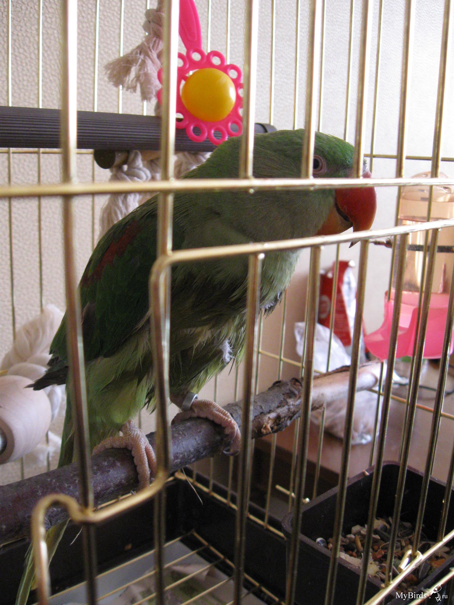 Скажите пожалуйста , вот на фото у вашей птички пластмассавая жердочка - не хорошо :nono::) , надо заменить на жердочки из дерева !))) А из какого дерева я не помню , лучше у знатаков спросить)