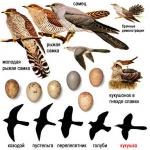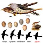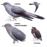 валнушка Опубликовано 25 февраля, 2011 #1 Опубликовано 25 февраля, 2011 Отряд Кукушкообразные — Cuculiformes Небольшие перелетные птицы с длинными широкими хвостом и крыльями. Два пальца на ноге направлены вперед, два назад.Виды, встречающиеся в России, питаются преимущественно крупными волосатыми гусеницами. Поскольку такой грубый ядовитый корм непригоден для выкармливания птенцов, кукушки приспособились подбрасывать яйца в гнезда других птиц. Внешне кукушки похожи на мелких ястребов, от которых отличаются прямым клювом и ступенчатым хвостом. Мелкие птицы, приняв их за ястреба-перепелятника, вылетают навстречу, чтобы отогнать от гнезд, и тем выдают их расположение.Птенец вылупляется слепым и голым, но на следующий же день выбрасывает из гнезда остальных птенцов и яйца. Если по каким-то причинам они все же остаются в гнезде, ”инстинкт выбрасывания” в кукушонке вскоре угасает, но птенцы хозяев гнезда обычно все равно погибают от голода. Дело в том, что мелкие воробьиные птицы кормят только желторотых птенцов, а у кукушонка рот шире и более ярко окрашен, поэтому он получает больше корма и быстрее растет.Интересно, что кукушки американских видов в основном выкармливают птенцов сами. Поэтому в названии известной книги и фильма “Полет над гнездом кукушки” нет никакого противоречия.Желудок кукушки изнутри покрыт специальной толстой пленкой, в которой застревают ядовитые волоски гусениц. Время от времени эта пленка отслаивается, и кукушка отрыгивает ее вместе с волосками. При вспышках размножения непарного и сибирского шелкопрядов, монашенки и других вредителей леса кукушки сотнями слетаются на пораженные участки. Кроме кукушек, почти никто из наших птиц этих гусениц не ест. //www.ecosystema.ru/08nature/birds/085o.php Ширококрылая кукушка (Hierococcys fugax): Индийская (Cuculus micropterus): Обыкновенная (Cuculus canorus): Глухая (Cuculus saturatus): Малая (Cuculus poliocephalus): Хохлатая (Clamator glandarius): Источники://rbcu.ru/upload/iblock/be0/Common_Hawk_Cuckoo_rCuculus_variusw_in_Hyderabad_W2_IMG_8920.jpg//english.vnsay.com/file/cms/70_1290327954_cheocheonho2.jpg//farm4.static.flickr.com/3426/3176911550_c8fd72f03d.jpg?v=1231333242//www.ecosystema.ru/08nature/birds/085.php//files.school-collection.edu.ru/dlrstore/9c6d8048-bd7f-4465-b0e6-2f481607d6ea/394.htm//www.naturephoto-cz.eu/pic/auer/cuculus-canorus-xxx2z8h0086mw.jpg//files.school-collection.edu.ru/dlrstore/962b0c04-4549-4967-bd07-14c5eb07c1e0/395.htm//www.ecosystema.ru/08nature/birds/086.php//farm4.static.flickr.com/3286/2938145804_462916ea2d.jpg//orientalbirdimages.org/images/data/lesser_cuckooma.jpg//www.ivnvechtplassen.org/ivn_vogels_dwaalgasten/Kuifkoekoek_Clamator-glandarius.jpg//www.povodok.ru/pics/art57/art5660_0.jpg