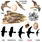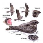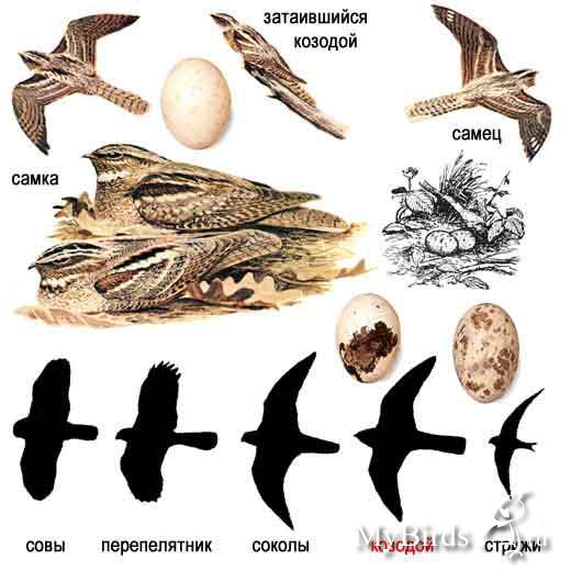 валнушка Опубликовано 25 февраля, 2011 #1 Опубликовано 25 февраля, 2011 Отряд Козодоеобразные — CaprimulgiformesНебольшие ночные птицы с мягким охристо-серым оперением. Клюв маленький, но разрез рта очень широкий, с жесткими щетинками по краям, таким ртом козодои, как сачком, ловят на лету мелких насекомых. Крылья настолько длинные, что в полете птицы несколько похожи на больших ласточек. Хвост длинный и широкий, полет маневренный и бесшумный. Глаза большие, черные; ноги очень короткие, так что птицы почти не могут ходить, а на ветки садятся не поперек, а вдоль. Шея очень короткая.Гнездятся на полянах и опушках, откладывая два серых с темным мраморным рисунком яйца прямо на землю. Птенцы рождаются зрячими, покрытыми пухом, но долгое время остаются в “гнезде”.День козодои проводят, затаившись на земле или толстой ветке. Они часто ловят комаров вокруг пасущегося скота. Из-за этой привычки и огромного рта птиц во многих странах возникло поверье, что они пьют по ночам молоко коров и коз. //www.ecosystema.ru/08nature/birds/098o.php Большой козодой (Caprimulgus indicus): Обыкновенный (Caprimulgus europaeus): Буланый (Caprimulgus aegyptius): Источники://www.birding.in/images/Birds/grey_nightjar.jpg//ibc.lynxeds.com/files/pictures/Caprimulgus_europaeus_sarudnyi_1.JPG//files.school-collection.edu.ru/dlrstore/a2bebea7-59ac-4ffa-8052-8a6002f88eeb/415.htm//www.ecosystema.ru/08nature/birds/098.php//cdn2.arkive.org/media/BB/BBFCA15A-46D9-4B00-A4FA-C1C1B84665AD/Presentation.Medium/Egyptian-nightjar.jpg