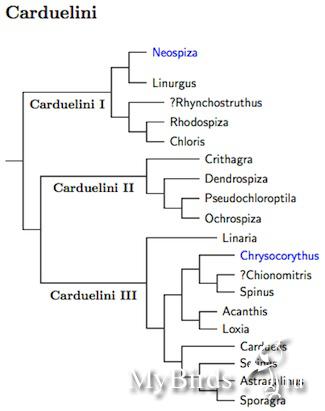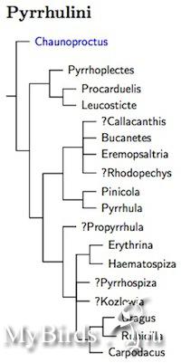 PYRCIN Опубликовано 27 февраля, 2011 #7 Опубликовано 27 февраля, 2011 Вот здесь замолвлено словечко о всех трех видов снегирей (с картинками). Хорошо. По филогенетическим отношениям, щуры и снегири, действительно - самые близкие родственники, входят в трибу Pyrrhulini хотя и относятся к разным родам. .....Ниже приведены схемы филогенетического древа, где прекрасно видны эволюционные связи и родственные отношения внутри семейства Вьюрковых. Картинки красивые, но устарели. Propyrrhula - упраздненный род - теперь у нас 2 щура. Обыкновенный и гималайский (subhimachala). Соответственно это более древняя веточка. Птенец снегиря похож не взрослого щура, а на его птенца. По окраске они почти не отличимы.