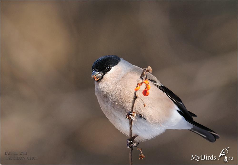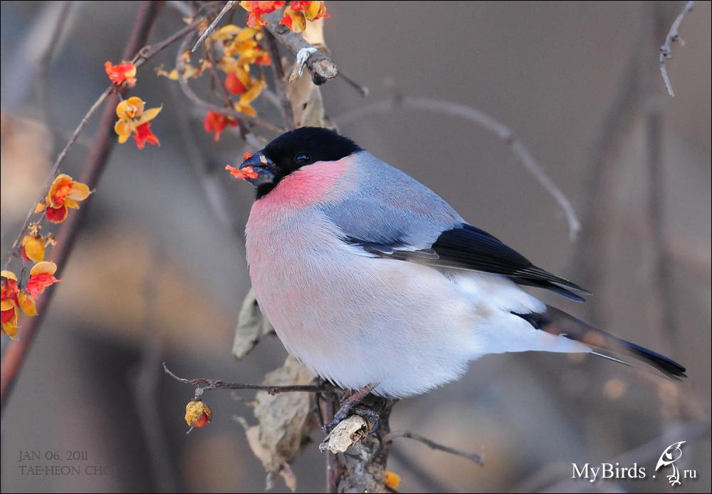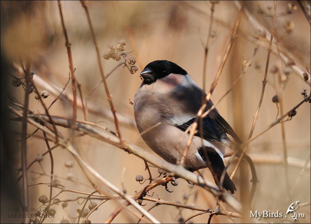 PYRCIN Опубликовано 14 апреля, 2011 #33 Опубликовано 14 апреля, 2011 (изменено) На территории России встречается два подвида уссурийского снегиря, которые внешне сильно отличаются. Выше в списке фото и рисунок Японского уссурийского снегиря P. g. griseiventris, обитающего в Японии и на Курилах. Его еще называют серобрюхим. Он крупнее нашего материкового подвида и отличается почти чисто серым животом у самцов. Самый многочисленный и более широкораспространенный на материке в лесах вдоль тихоокеанского побережья и на Сахалине - это P.g.rosacea - собственно Уссурийский снегирь. Именно он и вносит путаницу в систематику рода. На первый взгляд, выглядит он как обыкновенный снегирь, только несколько розовее по тональности и довольно часто интенсивность окраски живота бледнее, чем на щеках и горле. Но это не правило, попадаются самцы довольно ярко окрашенные. К Томуже самцы камчатского снегиря P.p.cassini, имеют такую же тональность красного оперения, но эта окраска достаточно равномерна. Поэтому не определив размеры, достаточно сложно в полевых условиях отличать эти формы. Уссурийский снегирь, материковый подвид на зимовке в Корее. Изменено 14 апреля, 2011 пользователем PYRCIN
