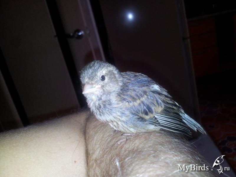 Ребятки подросли и при очередной чистке клетки от испуга все по выпрыгивали из гнезда,хотя еще очень рано.Из-за большого пространства 3 дня короткими перебежками слонялись по клетке.В итоге поставил гнездо на дно клетки и двое вернулись,остальные два парашютиста теперь спят на палочках.Еще как то здесь затрагивал тему о чубатости гибридов от чубатых канареек,но тему никто не поддержал и комментариев не оставил,так вот,есть хохолки у гибридов,есть.Вот фото одного из хохлатых гибридиков.