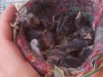 выкладываю фото второй кладки в этом году,репела и белой канарейки,очень интересовало какого цвета получаться птенцы.первый как вы уже видели (чисто папа)серый как воробей,а вот в этом выводке уже просматриваются белые перья