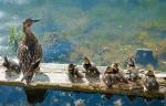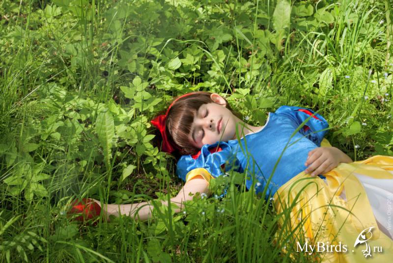 Lerois Опубликовано 8 июня, 2013 Автор #911 Опубликовано 8 июня, 2013 Мы вовсю наслаждаемся летом и теплой погодой, которое оно нам дарит. Каждый день мы с дочкой берем птиц и уходим в парк или в поле. Птицы и ребенок искренне радуются таким прогулкам. У Жани есть возможность вдоволь набегаться, Дай рад возможности порыться в траве в поисках букашек, а Алька наслаждается полетами. Его навыки полетов становятся все лучше. Нам уже мало 30-ти метрового должика, и я всерьез задумалась об изобретении способа быстро сматывать длиннющий шнур. Если раньше сорочан делал вокруг меня несколько кругов и плюхался мне на плечо, тяжело дыша и опустив от усталости крылья, то сейчас он может летать довольно долго, словно взбираясь по невидимой винтовой лестнице все выше и выше... Когда он становится еле-видным пятнышком, а должик в моих руках натягивается, я зову его и он начинает также плавно и грациозно спускаться ко мне с небес. Это волшебное чувство. Иногда мне кажется, что я летаю вместе с ним, настолько яркие эмоции исходят от моего любимца. Меня удивляет только одно - так много и так далеко Алька летает только в одном месте - в Луге, на опушке леса. Когда же мы гуляем где-то еще, он все так же, как и раньше, делает несколько кругов, не поднимаясь выше 10 метров, и летит на плечо ко мне.Потом мы все вместе устраиваемся на траве, я достаю бутерброды для нас с дочкой, яблоки и мешанку для мальчишек и мы отдыхаем, наблюдая, как солнце медленно клонится к горизонту, окрашивая небо сначала в пурпурный, а потом в алый цвет. К вечеру мошкары становится очень много, и нас с дочкой спасает только антимоскитный стикер. А птицы вовсю щелкают клювами и радуются тому, что добыча сама летит в клюв. И вот, приходит время идти домой... Мы собираемся и идем в сторону заката, зная, что завтра снова придем сюда и будем впитывать солнечные лучи и вдыхать лето, стараясь насытиться им так, чтобы хватило на всю зиму. Летим: Алька ищет насекомых: Вот тут мы иногда гуляем: Вчера нам неспеша и отважно перешло дорогу маленькое утиное семейство. Я не удержалась и проследила, куда же они шествуют. Оказалось - на озеро. Утка поплыла прямиком к старой коряге, залезла на нее и важным "Кряк" подозвала детей. Малыши, неуклюже переступая лапками, крутя хвостиками и вытягивая шейки тоже полезли на деревяшку. У кого-то это получилось с первого раза, а кто-то то и дело падал назад в воду. Но утята были упорны, и скоро все семейство восседало на теплом от солнца дереве и подставляло лучам пушистые бока. Но потом маме-утке показался подозрительным мой интерес к ее детям и она увела их на плавучий островок.Отважное семейство: Греются на солнышке: Близнецы: И немного не по теме. Это моя Жанечка: Вот так, в костюме мы гуляли по парку, фотографировались и вообще, веселились Прохожие не скрывали улыбок а Жаня была вся в образе, и на вопрос: "Как тебя зовут:", гордо отвечала: "Белоснежка" Две бессонные ночи, проведенные за шитьем костюма с лихвой окупились ее радостью)) Отведала яблочка и уснула: Надеюсь, вы простите меня за столь вольное отступление от темы .