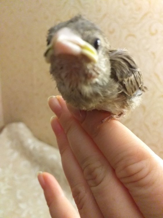 Марина Атучайка Опубликовано 16 августа, 2019 #158 Опубликовано 16 августа, 2019 Здравствуйте?! Помогите пожалуйста! Дело вот в чём : 13 дней как подобрала? птенца воробья, т.к. он сидел на обочине дороги и орал и убегать и улетать не собирался , желторотик и оперение не везде было. Гнезда рядом я нигде не нашла, кроме 9ти этажки.. пришлось взять, пожалела. Кормлю мешанкой: яйцо?, отварная грудка курицы, творог 2%( другова нету) ?дафния, измельченная яичн скорлупа, таблетки глюкон ?кальция, немного зелени, протертая морковь. Кормлю каждые 45- 1 час с 7 утра до 12 ночи. Птенец растет, из гнездышка старается иногда убежать и пробует летать иногда. Вопрос вот в чем: правильно ли я его кормлю?? И если он выживёт , то чем мне его потом кормить ? С уважением