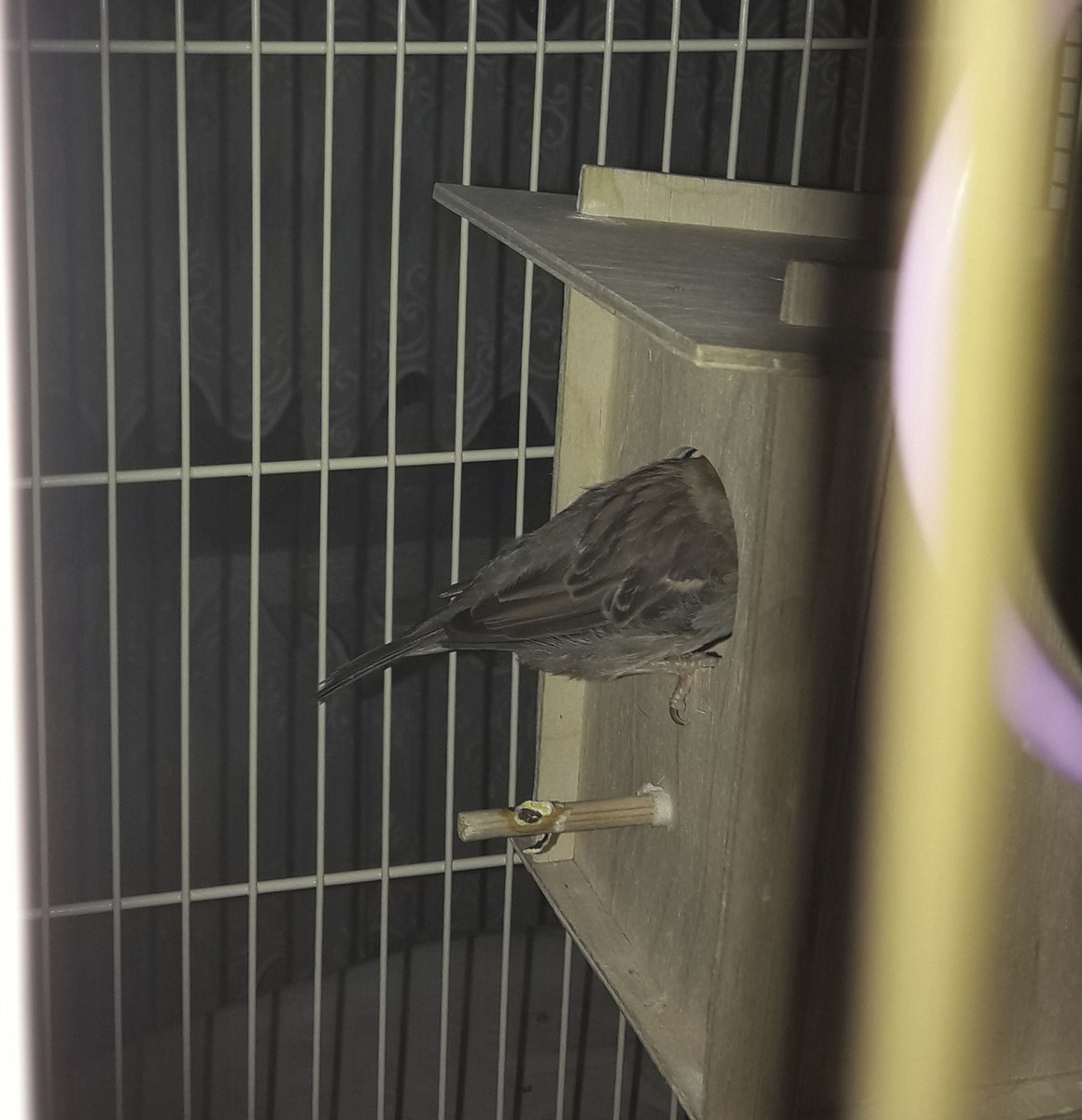 Наталья А Опубликовано 22 августа, 2019 #177 Опубликовано 22 августа, 2019 @Марина Атучайка У моего воробушка домик из фанеры в клетке висит. Днем она на нем большую часть времени проводит, играет, бегает по нему кругами, отдыхает. Если большой кусок еды ухватит, летит на верх, кладет его на край домика, чтобы не уронить вниз, и там ест. Ночью на входе в домик спит. Об домик хорошо стачивает коготки, за три с лишним года ни разу не приходилось их подрезать, коротюсенькие всегда. В общем, по моему мнению, домик для воробья очень полезная вещь. У моей мадам 2 одинаковых домика, когда один помою и просушиваю, ставлю второй. Живет в клетке одна, гостей не приветствует, изгоняет очень яростно, как истребитель сверху налетает и клюется. На 1-м фото - так мы днем восседаем на домике, на 2-м - спим. И не важно, что попка снаружи домика, главное голова внутри)))