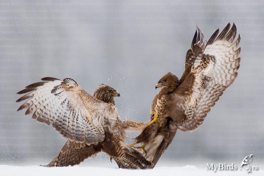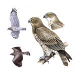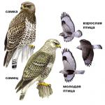 валнушка Опубликовано 18 июля, 2011 #1 Опубликовано 18 июля, 2011 Род Канюки — Buteo Крупные птицы плотного сложения с длинными широкими крыльями (размах от метра до полутора) и сравнительно коротким, широким, слегка закругленным хвостом. Снизу на сгибе крыла темное пятно (в отличие от змееяда и ястребиного сарыча). Окраска очень изменчива.Полет парящий и машущий; часто зависают в воздухе, трепеща крыльями и опустив хвост.Питаются в основном грызунами, иногда мелкими птицами, насекомыми, лягушками, змеями. Добычу высматривают с воздуха или столбов, деревьев. Иногда убивают даже крупных ядовитых змей, закрываясь жесткими маховыми перьями от укусов, как шитом, и нанося удары когтями. В кладке 2-6 белых с рыжеватыми крапинками яиц.Голос — заунывное протяжное взвизгивание. //www.ecosystema.ru Зимняк (Buteo lagopus): Мохноногий курганник (Buteo hemilasius): Курганник (Buteo rufinus): Канюк (Buteo buteo): Ястребиный сарыч (Butastur indicus): Змееяд - Очень редкий исчезающий вид птиц, занесён в Красную книгу России и Красную книгу Беларуси. Один из самых пугливых и недоверчивых по отношению к человеку пернатых хищников. Общая длина — 67—72 см, размах крыльев 160—190 см, длина крыла 52—60 см. Самки крупнее самцов, но окрашены одинаково с ними. Окраска спинной стороны птицы — серовато-бурая, молодые птицы по окраске сходны со взрослыми. Населяет зону смешанных лесов и лесостепи. Гнездятся в Северо-западной Африке, в Южной и отчасти в Центральной Европе, на Кавказе (за исключением степного Предкавказья и Прикаспия), в Малой Азии, на Ближнем Востоке, Средней Азии, Юго-Западной Сибири, в северной части Монголии, на юге до Пакистана и Индии. Из Википедии. Змееяд очень скрытен, осторожен, молчалив. Для гнездования избирает удаленные от человека участки леса с полянами и болотами, удобными для охоты. Гнезда строит маленькие, не крупнее, чем у канюка, рыхлые и какие-то небрежные; взрослая птица в нём просто не помещается — и голову видно, и хвост снаружи торчит. В выстилке лотка тоже никакой выдумки — только зеленые веточки да змеиная чешуя. Процедура кормления птенца необычайно сложна. Сначала птенец хватает змею за хвост и начинает тянуть её из родительской глотки. Для взрослой птицы операция эта вряд ли приятна, тем более, что змеиные чешуйки направлены назад. Иногда такое вытягивание длится 5—10 минут и более, в зависимости от размеров змеи. Вытянув, наконец, добычу изо рта родителей, птенец начинает сам её заглатывать и тоже обязательно с головы (по ошибке начав с хвоста, тут же его выплевывает). Длинную змею глотает долго — до получаса и больше. Дважды нам довелось видеть, как змееяд принес в гнездо ещё живых ужа и гадюку. Выдернутая из глотки змея начинала двигаться, и схватить её за голову неопытному птенцу было непросто. Любопытная в этой связи деталь (возможно, случайная): живую гадюку сразу же перехватила лапой за голову сидящая на гнезде взрослая птица, птенцу же была предоставлена возможность справиться с извивающимся ужом. — Галушин, В. М. - Хищные птицы леса (М., 1990) Змееяд (Circaetus gallicus): //www.ecosystema.ru//files.school-collection.edu.ru//ibc.lynxeds.com/photo/rough-legged-...sting-post-area//ibc.lynxeds.com/photo/rough-legged-.../female-perched//www.mybirds.ru/forums/index.php?showtopic=34481//www.oiseaux.net/oiseaux/accipitrifo...tue.rabi.4g.jpg//animaldiversity.ummz.umich.edu/site....jpg/medium.jpg//animaldiversity.ummz.umich.edu/site....jpg/medium.jpg//www.naturephoto-cz.eu/pic/sevcik/bu...b_rufinus_1.jpg//www.fsquares.com/bis/Photographs/Lo...zzard_23059.jpg//www.biolib.cz/IMG/GAL/29592.jpg//www.mnh.si.edu/exhibits/natures_bes...dsWinner_lg.jpg//upload.wikimedia