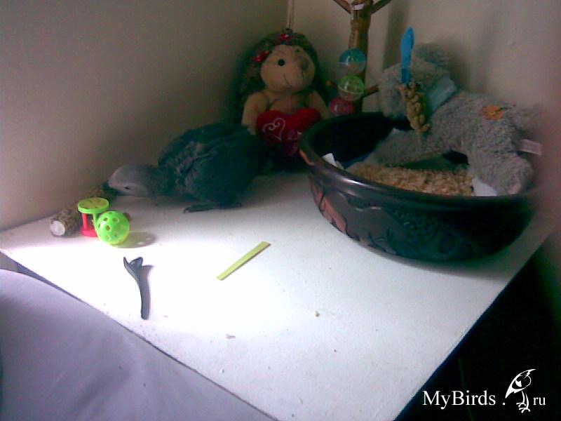 Xelen Опубликовано 30 августа, 2011 Автор #122 Опубликовано 30 августа, 2011 Заодним сфоткала наши 2 дерева, оба они мне кажутся неподходящими, одно из них ( которое сейчас рядом со спально-игральным местом Боки ) нашей Ара и ветки мне кажутся толстоваты для жако... Боки его пока никак не любит, я не настаиваю, и подумываю убрать с глаз его долой... или оставить ? Второе поменьше, под жако в самый раз, но из чего оно я не знаю, ( оба стэнда покупные и из правильных деревьев, одно из них из манго, второе неизвестно мне ) у него ветки гладкие слишком и как то высоко оно, но когда сажу его на поддон, он охотно играет с игрушками на нём.