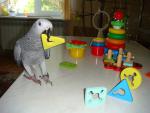 Нинок16 Опубликовано 20 октября, 2011 Автор #37 Опубликовано 20 октября, 2011 Сегодня любимому серому чуду 8 месяцев Кашу есть так и не научились ,хотя интерес проявляем и что-то пробуем. Пробуем на клюв обои и потолки, где получается ковыряем .Понравилось кататься на плече,начали отучать и стараться,чтоб проводила игры на стенде.Возле стенда поставила коробочку и большую часть мы туда делаем свои дела за что получаем семечку. И фото нашей Алисы