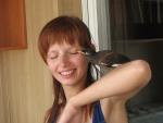 злаЯ Опубликовано 7 сентября, 2011 #49 Опубликовано 7 сентября, 2011 (изменено) Елена Толстун , спасибо, вы отличную идею подали, я буду искать ручки сначала у себя в городе, если не найду - буду смотреть варианты отдавать в Москве. А мы растем и хулиганим. Стал ручным, любит лазить по рукам-плечам-голове, перебирать волосы и пытаться с ними улететь. Любит, чтобы его кормили с рук или пинцета. Поставили ему "вольер" - коробку из под холодильника. В ней одну сторону вырезали и затянули москитной сеткой, а также три жердочки и две дверцы. На второй или третий день как только стемнеет стал туда залетать и засыпать на верхней жердочке. Мне остается только закрыть дверку. Красота. Правда недавно кошки ночью запрыгнули на коробку и очень его напугали, поэтому некоторое время "укладываю" его вручную. Целыми днями летает по лоджии и купается, купается, купается. Может и 4 раза в день занырнуть в купалку. Любимое место для сушки пера - конечно же моя голова. Скачала в интернете пение певчих птиц и ставлю ему по утрам. Он неплохо им подражает, трелей еще не выводит, но очень приятно поет, подражая дрозду и соловью. Остальные его как-то не впечатляют. Любит сидеть на руке, обследовать лицо и слушать как с ним разговариваю. Сам непрерывно в это время чирикает, тихо и нежно. Балдежный После истории с кошками днем, во время купания, выпало два пера, по окрасу похоже что из крыльев. Кончики не обломаны, видно, что не выдраны и не сломаны. А еще с хвостовых перьев сходят трубочки - растем Только не нравится, что два пера в середине хвоста достаточно потрепаны, в клетке не сидит, только если об коробку да жердочки? Мои кошки его гипнотизируют через окно и пытаются лапами ловить, а он на них нападает через то же окно. Однажды собака зашла к птице - он сел на голову псине, та жутко перепугалась. Нашла зоофобус, похоже у единственного человека, который его разводит. Дороговато, поэтому пробую сама разводить.В целом кормление состоит из мешанки, кузнечиков, зоофобуса, мучного червя (ест плохо), и фруктов-ягод: малина, клубника, виноград, смородина, груша, очень редко яблоко. Кузнечиков даю живых (самых мелких) - столько радости поймать и слопать, или брюшки замороженных. Мешанку ест сам, в основном с утра.Судорожно ищу возможность привезти Падован. Вот думаю, брать только GrandPatee Insectes или можно взять GrandPatee Fruits корм для насекомоядных и плодоядных птиц? Немного фотографийРаз-два, три-четыреПосле купанияПортрет В целом очень интересная в содержании птица. Контактный, коммуникабельный, внимательный, вдумчивый, бесстрашный, любопытный Изменено 7 сентября, 2011 пользователем злаЯ