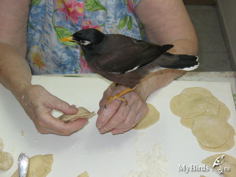 селена Опубликовано 11 сентября, 2011 #50 Опубликовано 11 сентября, 2011 У меня такое чудо по имени Кузя живет уже шесть лет.Вам еще повезло:мой почти год не ел самостоятельно-шпиговали как гуся.А потом он все научные подходы к выкармливанию имел в виду.Ест из тарелок-очень борщ со сметаной любит,ставим ему отдельную плошку.Мы у этого изверга в полном подчинении.Кузя в 4 месяца начал говорить.Словарный запас около 50 отдельных слов и словосочетаний,которые он употребляет со смыслом:кушать-это кушать а когда это чудовище начинает вопить,что Кузя хочет купаться, то нужно все бросать и наливать его мисочку так как за промедление можно получить в морду. Дома ходим в защитных очках так как неоднократно клевал в глаза.К сожалению, я не знала что этот вид майн может научиться так говорить и специально его учить начали поздновато. А вы это можете уже сейчас.
