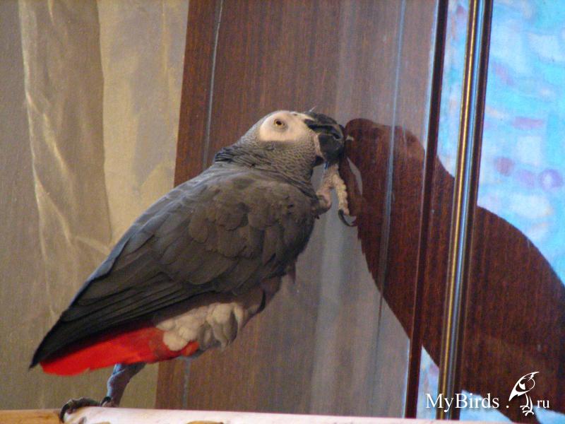 Султанка Опубликовано 27 ноября, 2011 Автор #171 Опубликовано 27 ноября, 2011 Наш серый гордый птиц переселился в большой свой дом, но дом не такой уж и удобный на мой взгляд. Получается что если даже жердочку сделать максимально высоко, то Томи все равно будет ниже плеч моих сидеть. Ножки у клетки слишком коротки к сожалению. Как быть? ведь попугаи чувствуют не комфортно себя когда над ними зависаешь практически? Из приятных и положительных моментов: Томи начал наконец-то грызть грушки, раньше он просто перекусывал канаты на которых они висели...игрушки падали и на этом все заканчивалось. Он стал Тише, на много..и спокойнее. Теперь я выпускаю гулять его только на два часа, и пытаемся привыкать к палочке..пока без особых успехов. Но аттракцион начинается после того как я сажусь в засаду, чтобы закрыть его в клетке вечером. Привязываю веревочку к дверце, ставлю кормушку.....ставлю зеркало чтобы видеть клетку и выхожу из комнаты....и жду. Иначе ни как не получается закрыть.