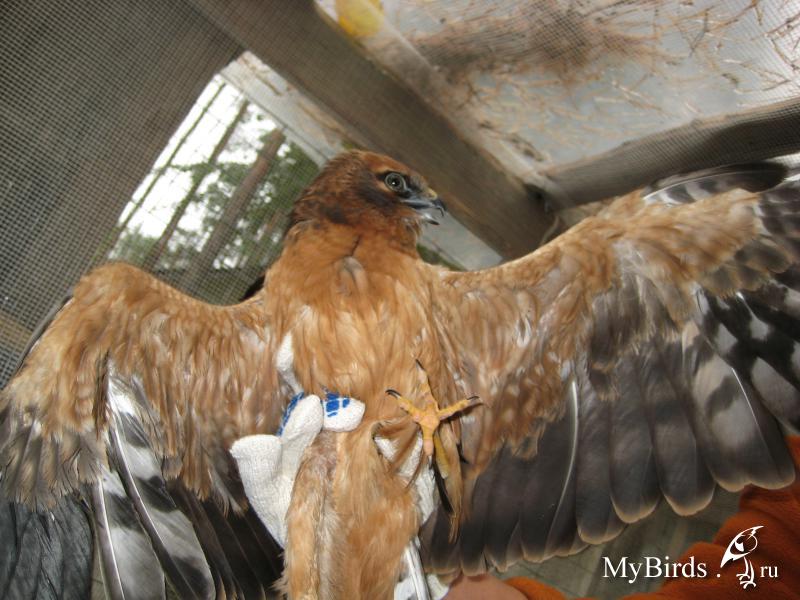 girasole Опубликовано 30 сентября, 2011 #1 Опубликовано 30 сентября, 2011 Всем добрый день! 15 августа этого года мы подобрали ( выловили в реке сачком для ловли рыбы) ястреба-канюка.Что он там делал - не спрашивайте))) Тайна великая сие есть)). Когда он обсох. мы онаружили отсутвие перьев на хвосте и и маховых на правом крыле. Казимира( это его имя в миру) - мы помесили в просторный вольер, где кормили за неимением мышей говядиной и курятиной. Сейчас перья практически отросли. Но на дворе сентябрь и он полтора месяца не летал. к тому же это вообще мог быть птенец.. Как бы это определить. кстати? М ы бы хотели его выпустить. но уже конец сенября и не хотелось бы чтоы он просто погиб Так как фиг его знает. долетит ли он до африки в одиночестве и хватит ли у него сил и ума добывать себе пропитание. Короче, помогите советом - что делать с птицом? Можно ли выпускать, не поздно ли? Вопрос о передаче в хорошие руки рассматриваться будет при невозможности вернуть птицу в естетсвенную среду. Место действия - рязанская область