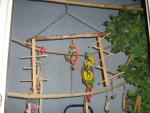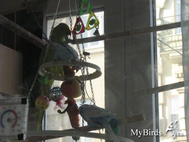 Zosia Опубликовано 20 октября, 2011 #1 Опубликовано 20 октября, 2011 Начало скопировано из "Кольчатых", автор Ирина.http://www.mybirds.ru/forums/index.php?sho...пления+жердочек И я покажу свои варианты.1. Использовать для опоры (торцевой) жердочек можно кучу всего.Самое простое- крышечки(разные диаметры) от соковТорцевая жердочка,закрепленная двумя такими крышечками Решетка,закрепленная крышечкой на листе поликарбоната- чтобы птиц с пола мог легко подняться. Для жердочек небольшого диаметра хорошо подошди баночки из-под детских красок(набор был для раскрашивания)Вот торец "фоповской" жердочки,сама крышечка укреплена на лист сотового ПК саморезом Другой торец,просто для иллюстрации На даче использовала крышки от воды(5 л) под толстые ветки. Для установки длинной бамбуковой удочки,которая проходит через весь вольер(летный), длина 2,5 метра, использовались упоры для штанг в платяных шкафах: Для жердочки у ожерелов(торцевая) использовалась отснова от старой швабры (в неё как раз вставился черенок), закрепленный снаружи кружком от вырезанного летка(оргстекло),все-на саморезе. Так же использовала упоры от штанги карниза, для стенда прогулочного: Для подвешивания к большой жердочка игрушек и качалок использую хомуты, многоразовые (для подвязывания цветов) , и одноразовые (более "клювоустойчивые", для прокладки эл.проводов,есть разных толщин) Вот кусок палки,на цепях(от кашпо), крючок подвешен к хомуту на большой жердочке, сами цепочки укреплены к торцам палки-качалки саморезами.Вот конструкция из держателя для фруктов и основы от старой люстры-каскада, все подвешено на хомуты Под большой жердью укреплена качающая длинная жердочка(куплена в Леруамерлене), длино 120 см.В торцы вкручены крючки-саморезы,к ним- цепь от кашпо,наверху висит на карабинах,зацепленных на хомуты (неразьемные).Снизу по концам жердочки-качалки привешены качалки-этажетки(купленные). На сами цепочки удобно вешать игрушки попугайские: Вот так через стекло видно немного: