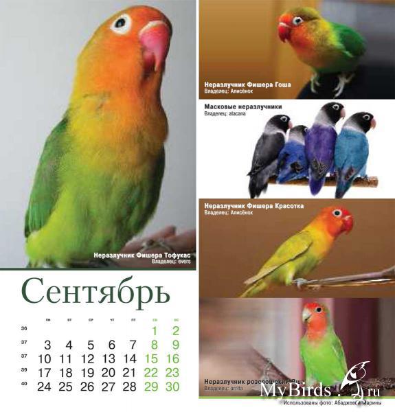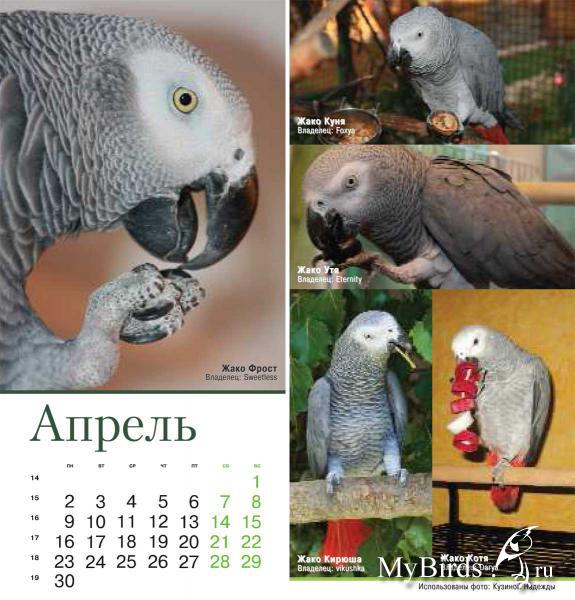 AlGur2 Опубликовано 2 ноября, 2011 #44 Опубликовано 2 ноября, 2011 Надежда! Я возьму один календарь А3 с совами. Кстати, у моего сплюха (купается в собачьей миске) теперь есть имя - Бука После появления невесты он на 200% ее оправдывает.Мы так и не договорились о брелоках и магнитах. Я могу сделать пробную партию на встречу. На пьянку пойду! Не забудьте пригласить! Друзья! Администрация MyBirds.ru представляет макеты календарей на 2012 г. !!! Большая просьба ко всем авторам фотографий и владельцам питомцев, попавших на календарь - проверить правильность написания!!! Друзья! Для определения тиража нам необходимо знать, сколько каких календарей Вы захотите приобрести! Для этого надо обязательно оставить заявку на календари, в которой указать:- Ваш ник или ФИО, если у Вас нет ника- способ связи с Вами (личка на форуме или e-mail)- вид календаря- кол-во Заказ на календари можно сделать любым удобным способом:- в данной теме- в личной почте на мое имя на форуме (этот способ самый предпочтительный!!!)- на адрес mybirds-ru@yandex.ru Заказ необходимо сформировать до пятницы 11 ноября! С москвичами по сложившейся традиции мы будем встречаться по возможности в один день в кафе и приурочим реализацию календарей к встрече Форумчан. (возможен самовывоз календарей для тех, кто не сможет приехать на встречу) Др.города России - доставка почтой с наложным платежом плюс от 150 р. доставка (зависит от веса) Др. страны - доставка почтой с ОБЯЗАТЕЛЬНОЙ предоплатой (способы в личке), плюс доставка от примерно 200р. На настоящий момент представляем календари Попугаи в 2 размерах - настенный А3 и настольный, размер 14*19 см, чуть позже выложим и другие макеты. Внимание! Фотографии в макетах пережаты, на печати картинки будут выглядеть по-другому Друзья! Большие подписи утяжеляют календарь! Администрацией сайта приняты стандарты подписи Ваших фотографий - мы указываем только Ваш ник. ФИО указываются только для профессиональных фотографов, которых Вы приглашаете для съемки птиц!!! Просьба отнестись с пониманием!