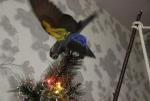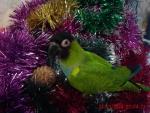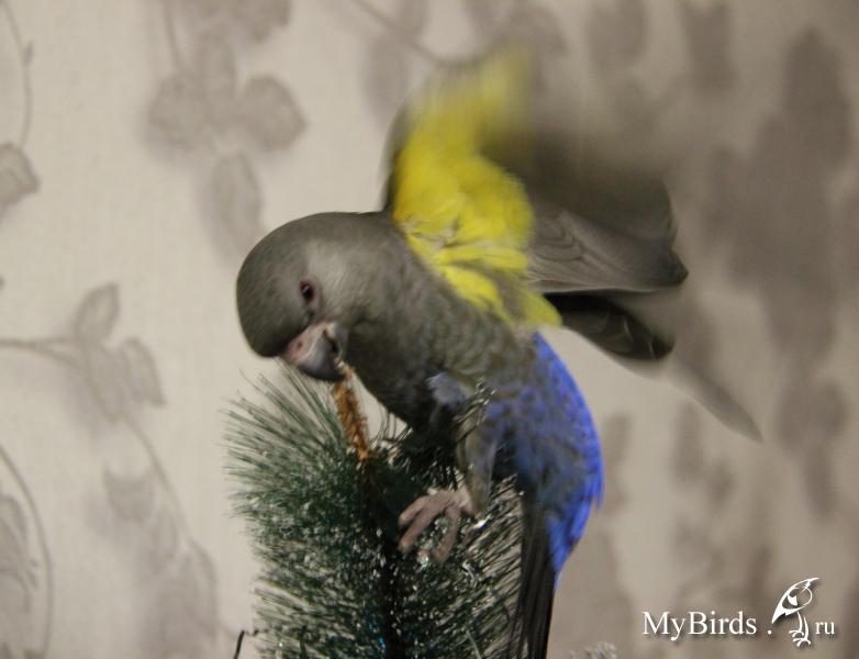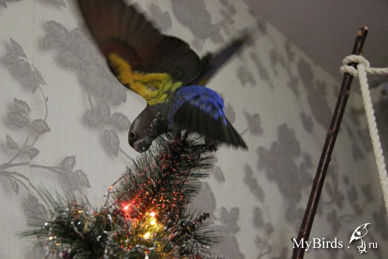 aivnsk Опубликовано 25 января, 2014 Автор #56 Опубликовано 25 января, 2014 Вчера убирала новогодние висюльки. Фродо обожает все эти нештатные движухи. Устроили небольшую фотосессию.Еще буквально вчера он научился залезать в клетку к кенарю. Раньше просто подходил и тырил у него еду - или с внешней стороны клетки клювом выкорябывал или просовывал свою длинную шею через открытую дверку до кормушки. А теперь забирается туда вместе с ногами и стоит на поддоне. Я когда увидела, просто офигела . Если вчера еще Бармалейки дома не было, то сегодня он сидел в домике, а этот "бегемот" забрался всем телом внутрь, закрыв толстым задом пути к отступлению. Только хвост наружу торчит. На выгуле они уже давно мирно сосуществуют, периодически нервируя меня своими салочками-догонялочками. Но в таком тесном пространстве... кенарская клетка практически по габаритам Фроды, плюс еще жердочки, вылезает он задом вперед, потому что аратинговский хвост просто не влезает. Придумали мне очередные сложности