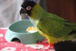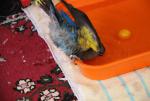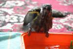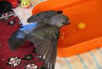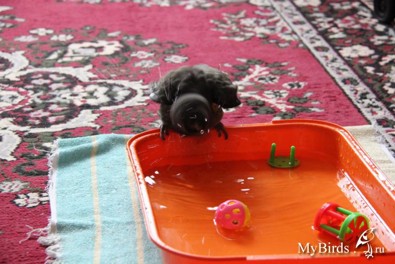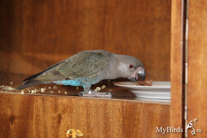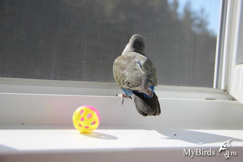 aivnsk Опубликовано 31 января, 2015 Автор #65 Опубликовано 31 января, 2015 (изменено) Дабб1, малышка из Воробьев, выкормыш. День рождения 26.09.2014, забирала ее сама, приехали домой 10 января. Такой трогательный ребенок, к новому дому привыкла моментально, как будто тут и жила все время. Сейчас уже научились есть фрукты: яблочко, апельсинку, банан. Едок из нее еще тот, больше обсасывает. Но по крайней мере когда предлагаешь что-нибудь в тарелочке, тут же уже без раздумий пробует, что же это ей такое принесли.Любит гулять, предпочитаете игрухи, к которым Фродо равнодушен. Фродо любит деревянные висюльки и дырявые барабанчики-мячики, Еве больше нравятся пластмасовые висюльки и погрызть что-нибудь мягко-резиновое. Уже отгрызла кнопки на пульте для тв и резиновое колесико на мышке. Фроду эти детальки за 3 года ни разу не интересовали.Достаточно легко дается в руки, пару раз сама прилетала ко мне дремлющей на диване и прижималась всем тельцем, забивалась под руку и млела когда ее гладят во всех местах.Это первая попытка искупатьсяОдин раз надумала забраться в клетку кенаря (птица там не было), я ее там закрыла. Фродо туда забирался тоже раза 2-3, но он может только зайти прямо и потом выйти обратно задним ходом - хвост не влезает и повернуться там он в состоянии. Ева же забралась полностью и пыталась там ползать. В итоге застряла клювом между прутьями, как раз в районе восковички, очень плотно застряла. Я почти сразу это заметила, но только со 2-ой попытки освободила. Визгу было, искусала меня по-полной. Я очень надеюсь, что она запомнит этот случай, и больше никогда не будет пытаться залезть в кенарскую клетку. По крайней мере мне теперь очевидно, что размер между прутьев при выборе клекти надо подбирать не только по принципу - не шире (чтобы голова не пролезла), но и не уже (чтобы клюв не застрял). То есть 1 см, даже наверное 1.5 см, между прутьями добавляют лишний риск травмы среднего попугайки.Ну и сегодняшние посиделки Изменено 31 января, 2015 пользователем aivnsk