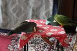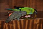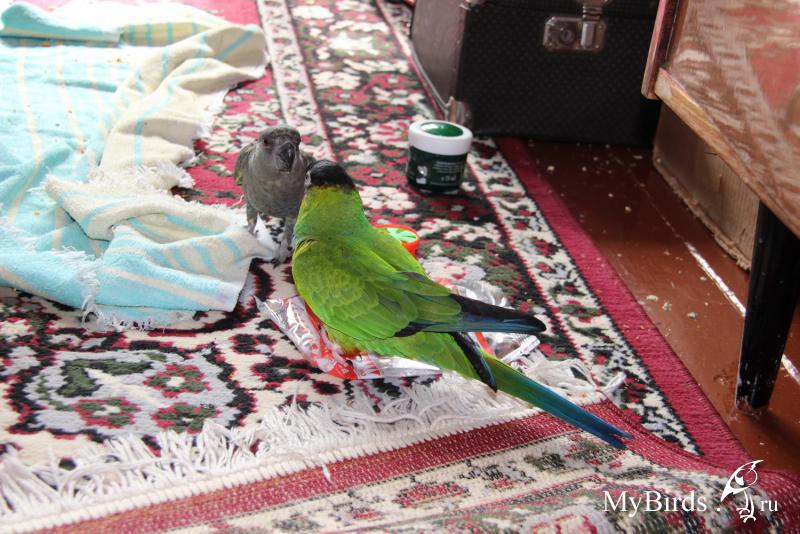 aivnsk Опубликовано 12 апреля, 2015 Автор #74 Опубликовано 12 апреля, 2015 Lukeria, Фродо вообще Апполон на выданье.Да, Ева немного поменьше Фроды. Когда рядом сидят не очень заметно, а когда начинают тянуться и меряться клювами чувствуется разница. Да и по весу, когда на мне сидят, Ева по ощущениям пушинка. И коготочки у нее нежные, не то что Фродо крюггер, как воткнется так точно не свалится, даже если я кульбит буду делать. У нее вес был 107 грамм в феврале, у Фроды 140 когда еще ему года не было, думаю, сейчас больше. Драться почти перестали, силовыми приемами обычно побеждает Фродо, зато у нее в полете ничего не отобрать. Если уж что-то отжала, можно долго ее гонять, не выпустит из клюва. Даже очень тяжелые предметы для нее не бросит.Да и Фродо очень толерантно стал к ней относиться, уже не такой единственный ребенок и эгоист как раньше.
