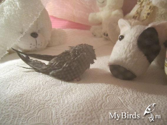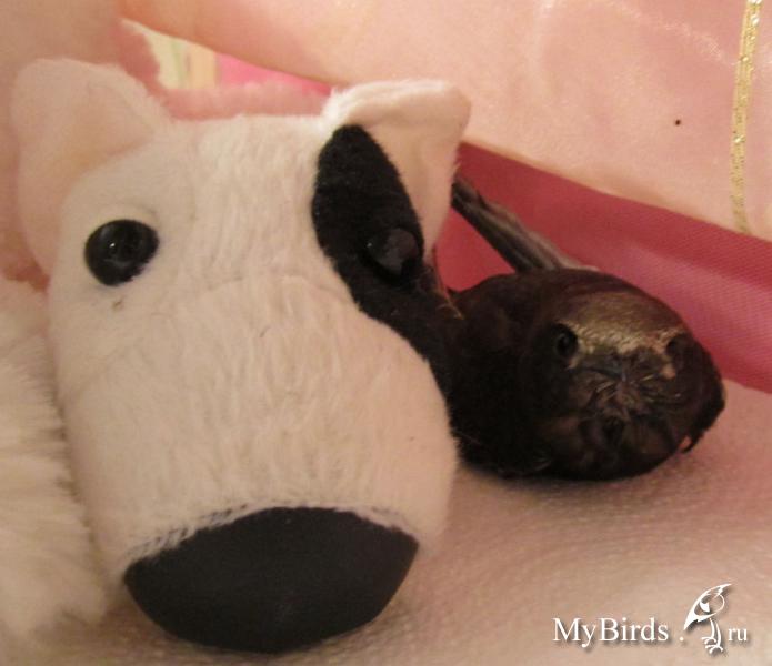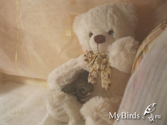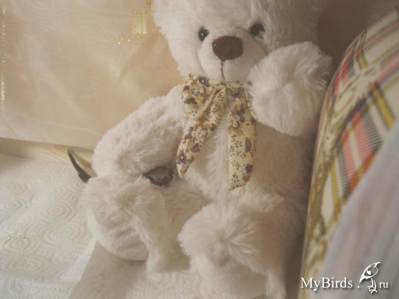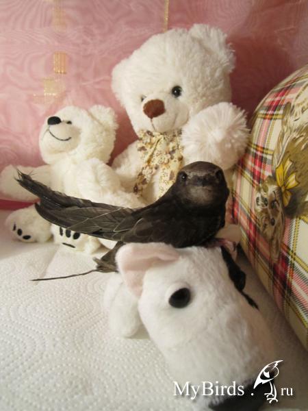 Piks Опубликовано 3 февраля, 2012 #23 Опубликовано 3 февраля, 2012 Спасибо-спасибо! А это продолжение истории: я успела сфотографировать Флай, когда она спала под лапкой медвежонка, но по-моему, мой стрижик никогда не спит по-настоящему - стоит мне появиться на горизонте - сразу бежит ко мне! Вот и в этот раз она быстренько стала выбираться из своего убежища, и вот что из этого получилось: Маленькая лапушка! Каждый раз поражаюсь стрижам, ну до чего же славные и милые птахи! Это характерно только для самцов? Даже и не знаю... Тюнсик тоже охраняет свой драгоценный диван, но только если на него кто-то лезет, Грин защищает жилище только внутри, если сунуть руку в домик, он непременно нападет.
