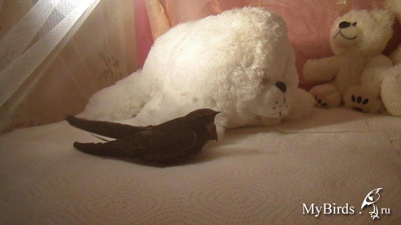 VT_IOD Опубликовано 21 января, 2012 Автор #3 Опубликовано 21 января, 2012 (изменено) Наш стриж тоже соня. Но стал он таким благодаря мне... Домашние даже шутят: сама ты сова (поздно ложусь), и из стрижа сову сделала! Встаём мы в 11 утра. Вернее встаю я, а стриж слышит из коробки шуршание постели, шлёпанье тапок, дребезжание раздвигаемых занавесок - и тут же подаёт голос! Это такое настойчивое "И!" (= я проснулся!) Если я этот крик игнорирую - ухожу в ванную умываться, начинаю застилать постель - стриж ждёт немного, и - повторный позывной! Настойчивей, иногда два раза подряд, и громче! Когда открываю - стриж слез уже со своей постельки, бегает, смотрит наверх и дрожит крылышками - доставай!!! Если делаю вид, что не собираюсь - начинает шкрёбать когтями по деревянной стенке. А когда наконец пересаживаю его в дневной домик (кресло) - вполне себе может там зарыться в мех и продолжить дрыхнуть как ни в чём ни бывало.Несколько раз пробовала будить раньше, открывала коробку часов в 8-9 - спал, уткнувшись в "печку", на шум в комнате не реагировал. А когда доставала - был сонный, глазки прям так и закрывались Когда вечером стрижу пора спать - он может сам подбежать к коробке. Даже слетал в коробку с дивана - и на свою постельку бежал. Показывал, что уже "детский час"! Но не всегда он такой послушный, может повредничать. Начинаем его укладывать - а он из коробки лезет, крыльями машет! Тогда я его достаю и тренирую. Налетается, подустанет - теперь можно спать Однажды ночь с днём перепутал - и как давай среди ночи крыльями в коробке тарахтеть! А на часах - 2 ночи! Ну, пришлось доставать и успокаивать, водичкой поить... И всё-тки как хорошо спать среди ночи, и слышать сквозь сон, как стриж иногда топает в коробке, или шебуршит крыльями, или чешется (бум-бум-бум о стенку ) - и потом снова тишина, заснул... И так хорошо на душе И несколько раз я слышала, как он вскрикнул во сне! Да-да! Совсем негромко и каким-то необычным звуком. И сразу почувствовалось, что ему что-то приснилось... Что снится стрижам? Загадка! 1. Стриж на "печке" в ночном домике. Сейчас нагреют воду, завернут вторую бутылку в носок, и уложат вдоль правой стенки. Тогда стриж слезет на мех и прильнёт к ним шейкой греться.2,3. Стриж в своём меховом гнезде. Изменено 21 января, 2012 пользователем VT_IOD