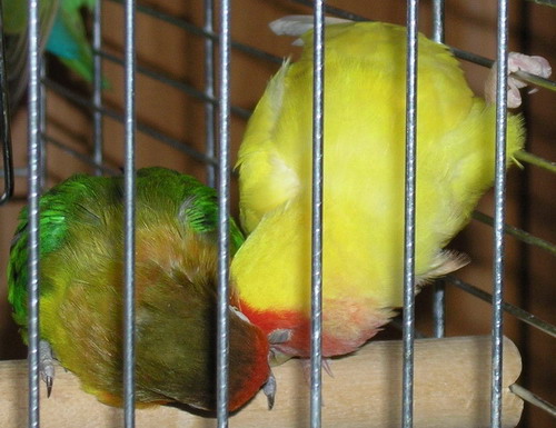 ВАРВАР Опубликовано 6 августа, 2007 #502 Опубликовано 6 августа, 2007 (изменено) Вот еще до кучи два розовощеких пестрого окраса - Лучик и Радуга. А без решетки есть только такое фото Кира изначально покупалась как Кирюша, но сейчас они с Прошей высиживают 3 яйца, а четветртое исчезло. Изменено 6 августа, 2007 пользователем ВАРВАР