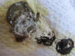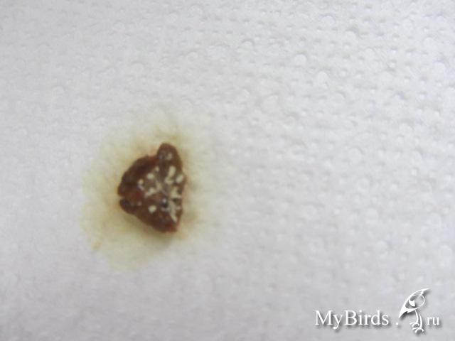 OFA Опубликовано 4 февраля, 2012 Автор #7 Опубликовано 4 февраля, 2012 (изменено) Доброе утро.Сегодня четвертый день лечения бисептол+метионин+карсил+мин.вода.Бублик чуствует себя неплохо кушает, пьет, летает, только клоака немного красновата, чем можно смазать?Ночной помет.Утренний помет после еды.Дневной помет в целом лучше чем ночной.Спасибо за помощь. Вопрос по способу дачи лекарства. Поскольку ни метионин, ни бисептол не растворяются в воде, можно сделать так: растолочь в порошок 1/4 таблетки, затем метионин разделить на 3 части, а бисептол на 5 частей и закатав в кусочек хлеба с горошину дать в клюв? Так намного удобнее, чем пытаться одновременно встряхивать шприц, открывать клюв и заливать нерастворенное лекарство. Или с хлебом нельзя? Изменено 4 февраля, 2012 пользователем OFA