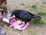 Вчера к Гохе в гости прилетал скворец :) тусовался рядом и собирал какие-то остатки Гошиных нычек. Не боялся его нисколько,хотя рисковал,конечно. Гоха его гонял, но безуспешно.