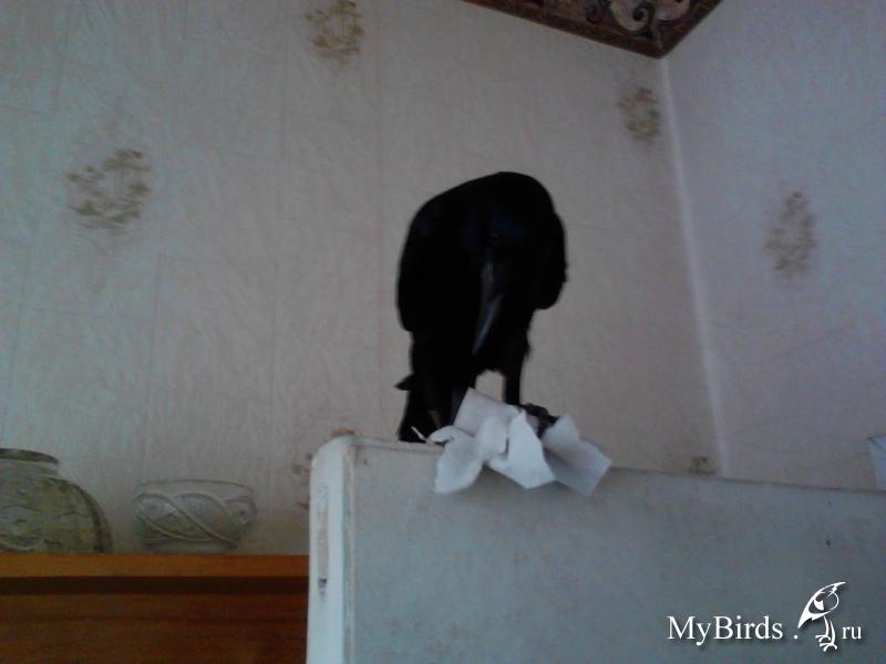 DREYK Опубликовано 11 марта, 2013 Автор #445 Опубликовано 11 марта, 2013 (изменено) Вот решил написать пару строчек.Графуша обламал себе почти все перья на хвосте . Осталось токо 3 перышка с одной стороны хвоста и всё. Подрезал клюв, сильно перерос. Срезал гдето по 7-8мм с верху и с низу, теперь клювик красивый без щели и загнутых концов. А перерос клюв из за страха много срезать. Но всё обернулось в лудшую сторону и вижу теперь сколько можно срезать без опаски гобратся до живого.Взвесил Фушу, в нем оказалось всего 420г. Не много и не мало Такой вот средний грачик.Граф стал больше петь и очень много новых звуков появилось. Жаль токо записать не могу ни как его пение. Изменено 11 марта, 2013 пользователем DREYK