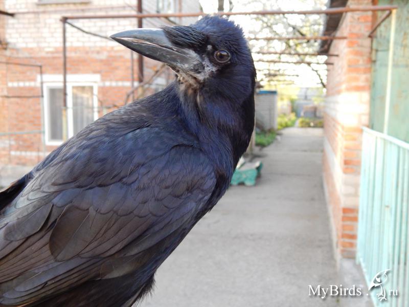 Сегодня я узнал что врановод я в городе не один. Есть еще у когото серая ворона. Ездил смотрел, птица летом живет в клетке на балконе 2 этажа и потому хорошо видно её. Конечно содержание не ахти :( , клетка маленькая, игрушек не видно, перо блёсое, явно проблемки с печенью. Хотел пообщатся с хозяином но увы дверь в подъезде была заперта.
