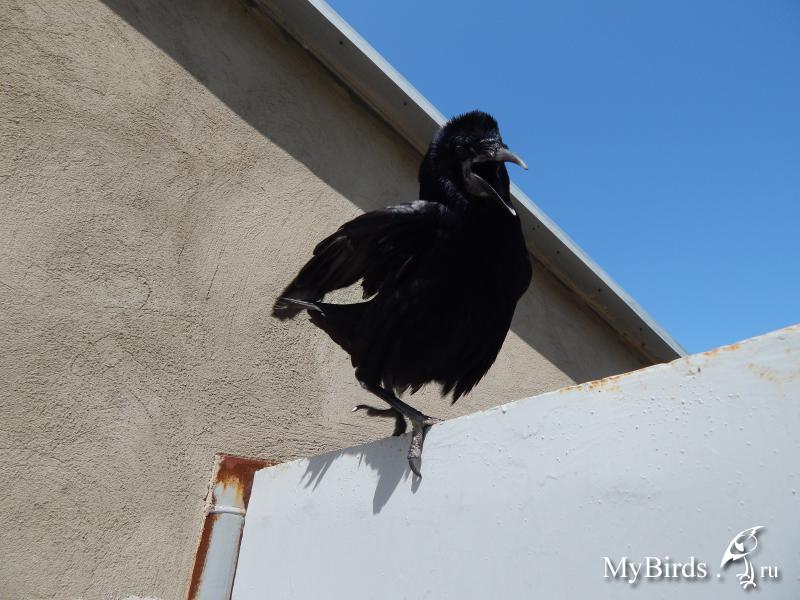 Сегодня в обед у Графуши выпало очередное маховое перо, и того это уже 5 пара махов меняется. А вот рули все ни как не меняются :cray: и клюв очень медленно лысеет :( хотя когда вижу диких молодых грачиков они тоже с "мохнатым" клювом и потертыми перьями.